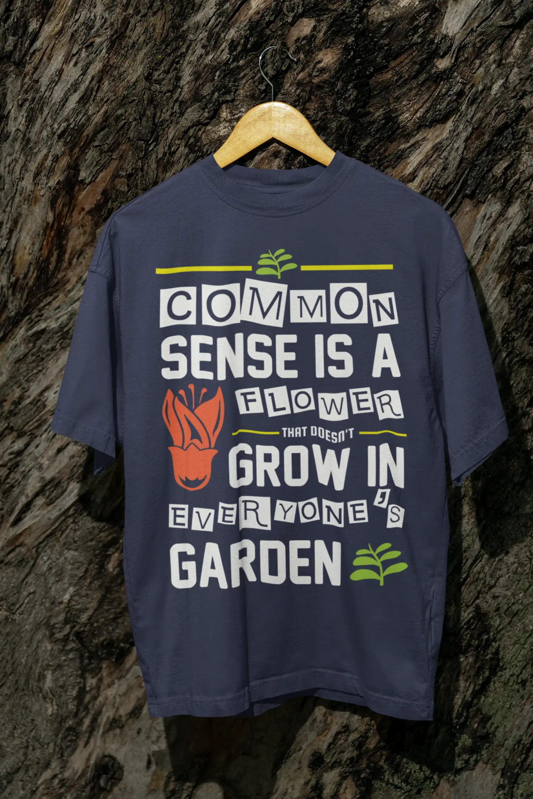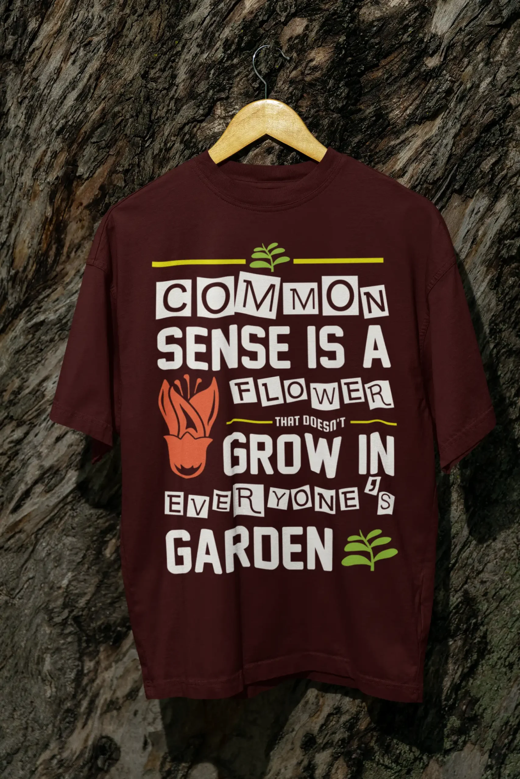 The Common Sense Flower Terry Oversized Tee by Mad4Street throws sarcasm straight on your chest with a bold front graphic that says it all — “Common sense is a flower that doesn’t grow in everyone’s garden.”