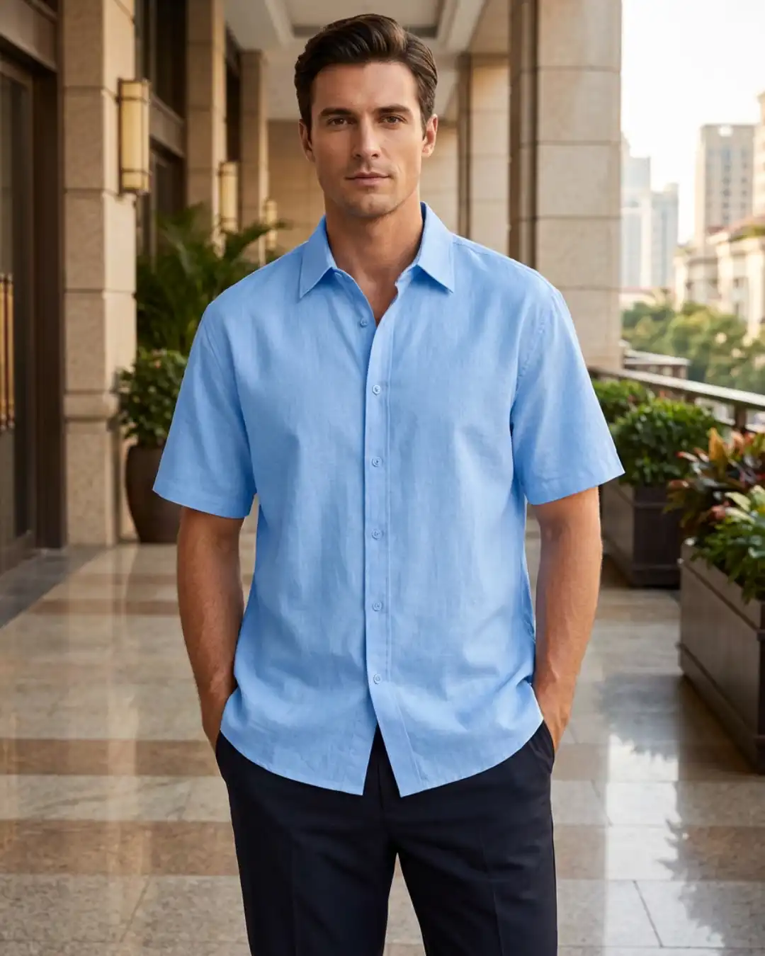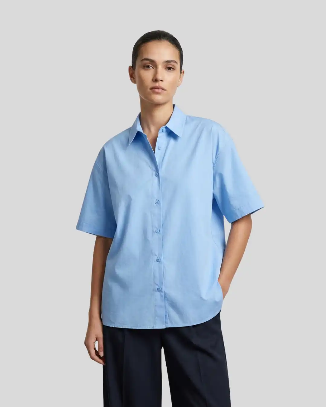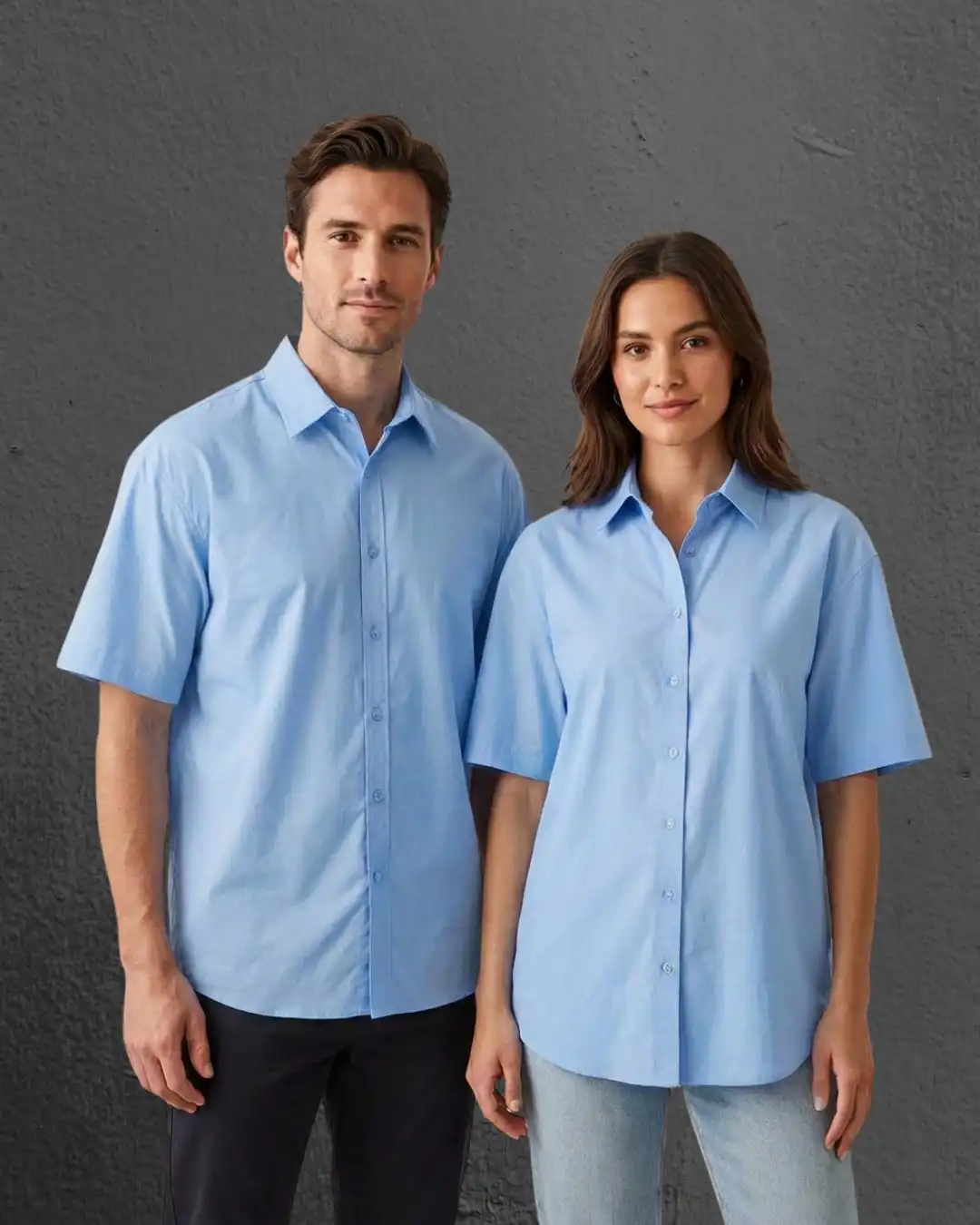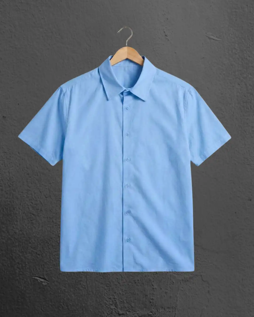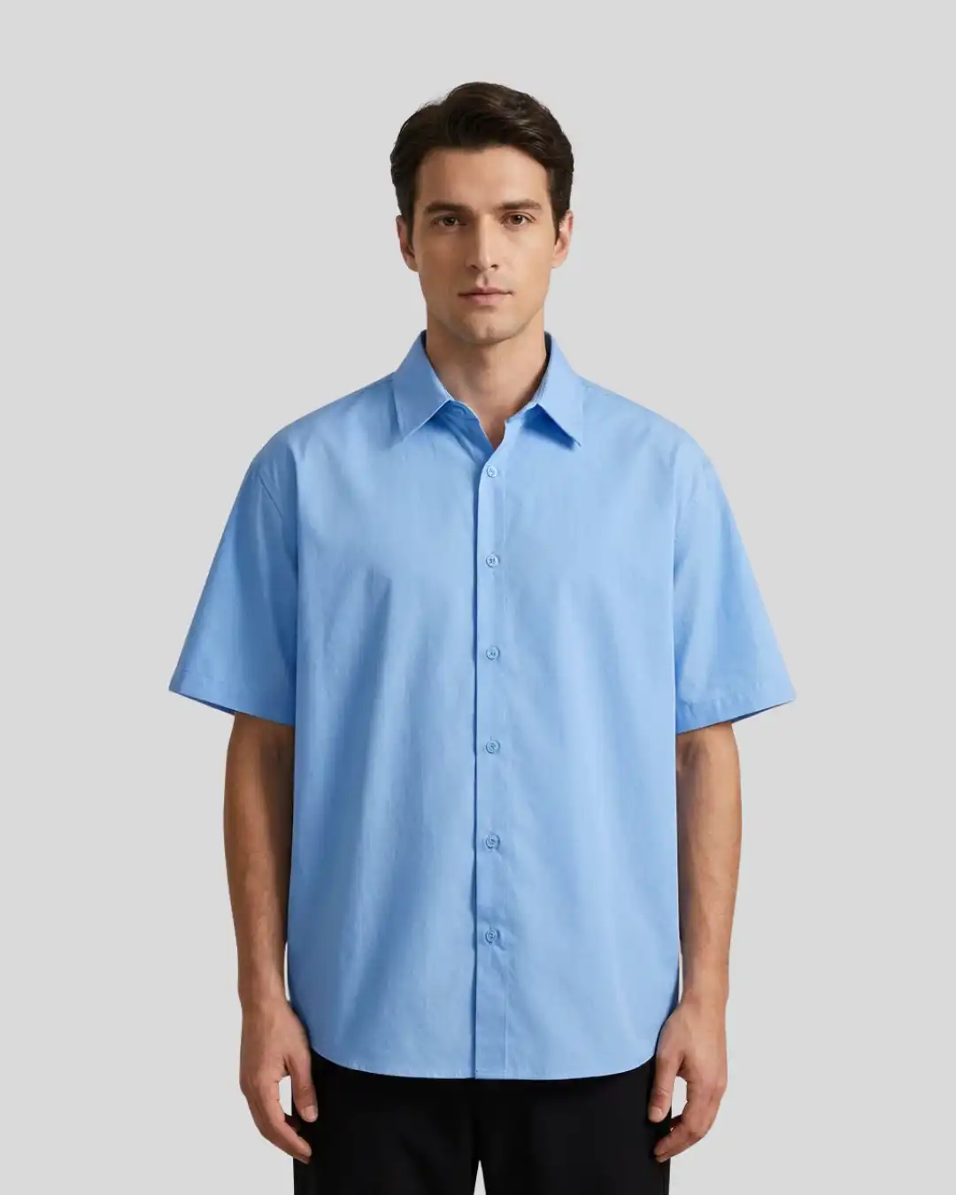 A baby blue oversized shirt made from 240 GSM cotton for breathable comfort and clean street style.