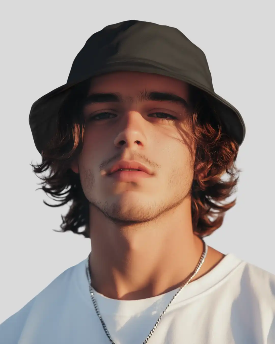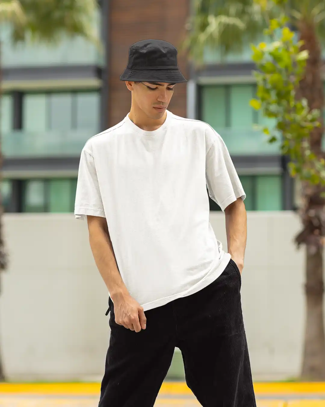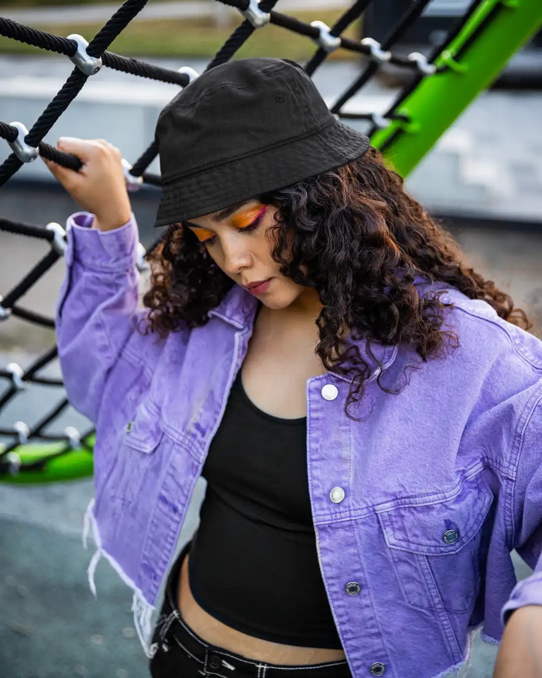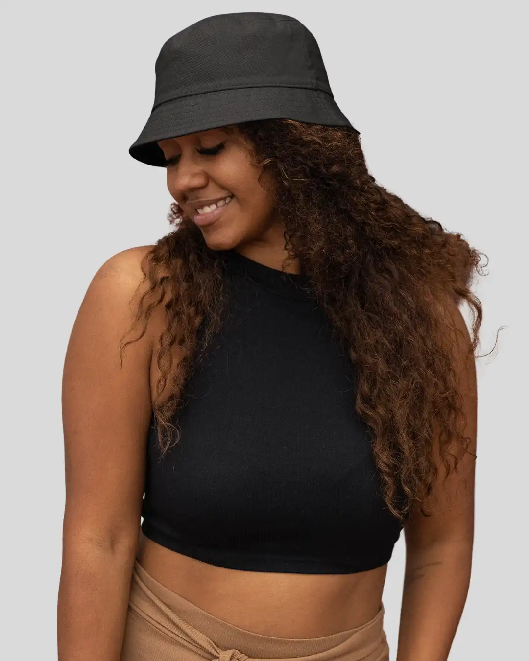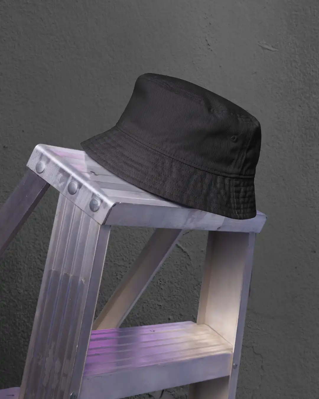 A classic black bucket hat made from 100% cotton with a soft brim — lightweight, breathable, and built for everyday streetwear and sun protection.