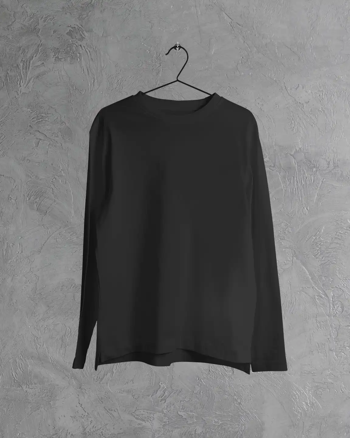 A clean black full sleeve tee made from 180 GSM cotton — breathable, versatile, and built for everyday wear.