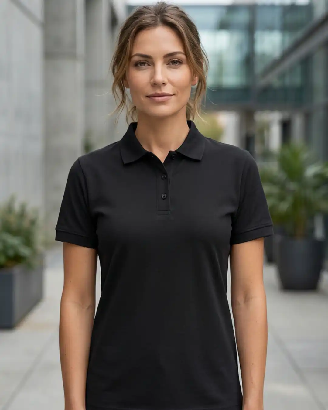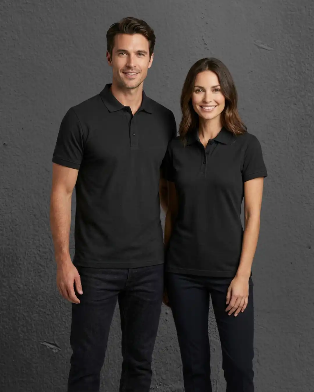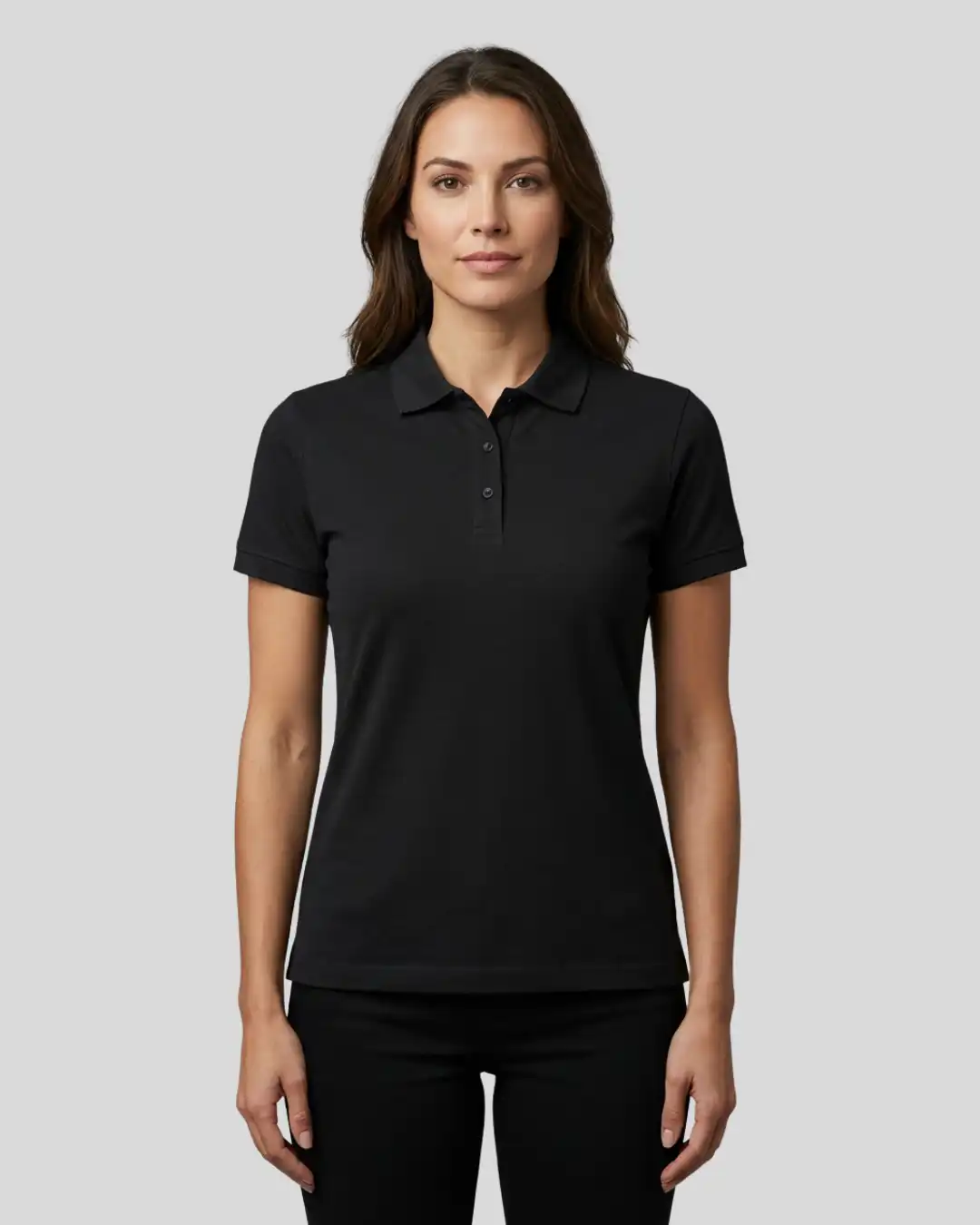 A premium black polo t-shirt made from 220 GSM cotton — structured, breathable, and perfect for everyday smart casual wear.