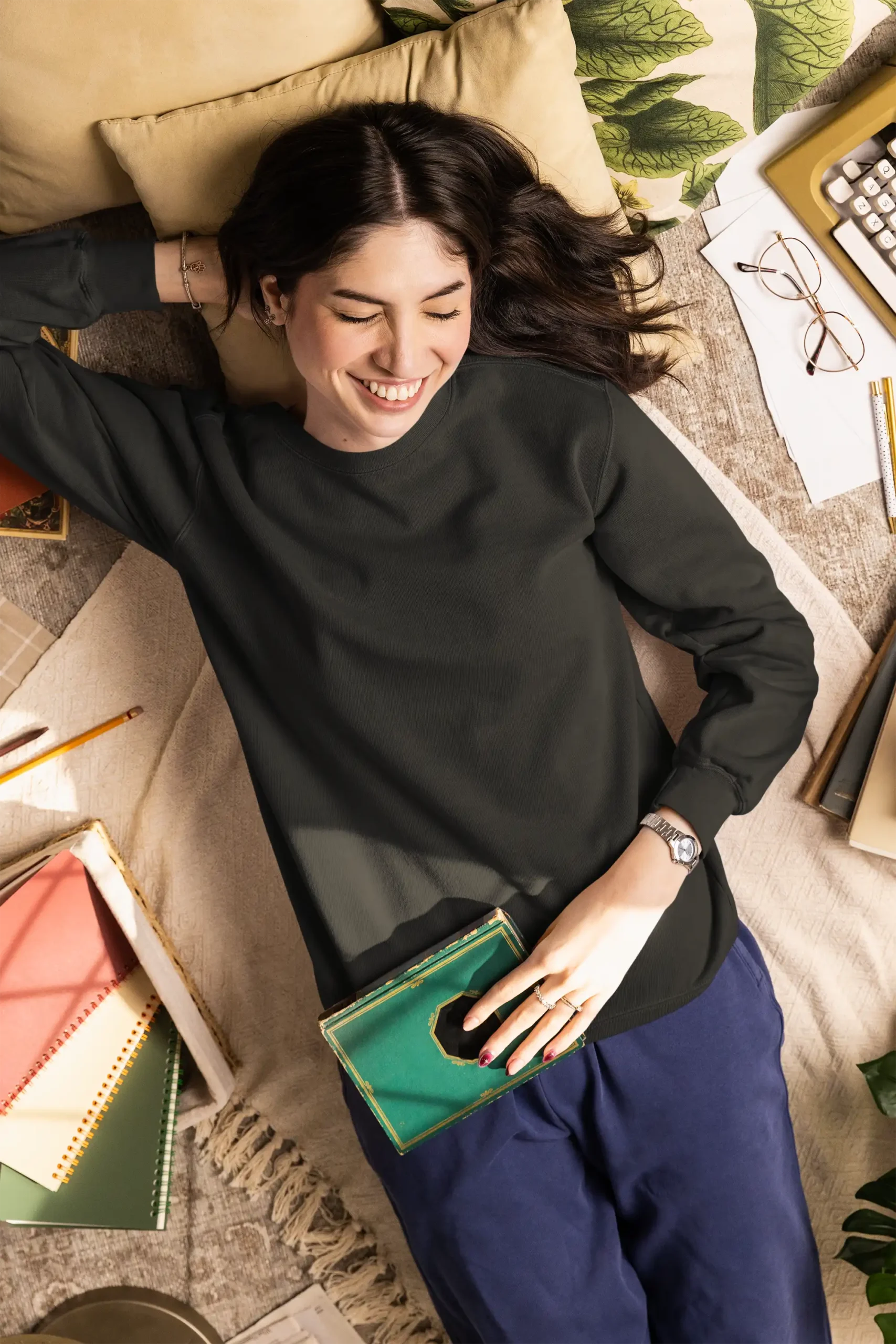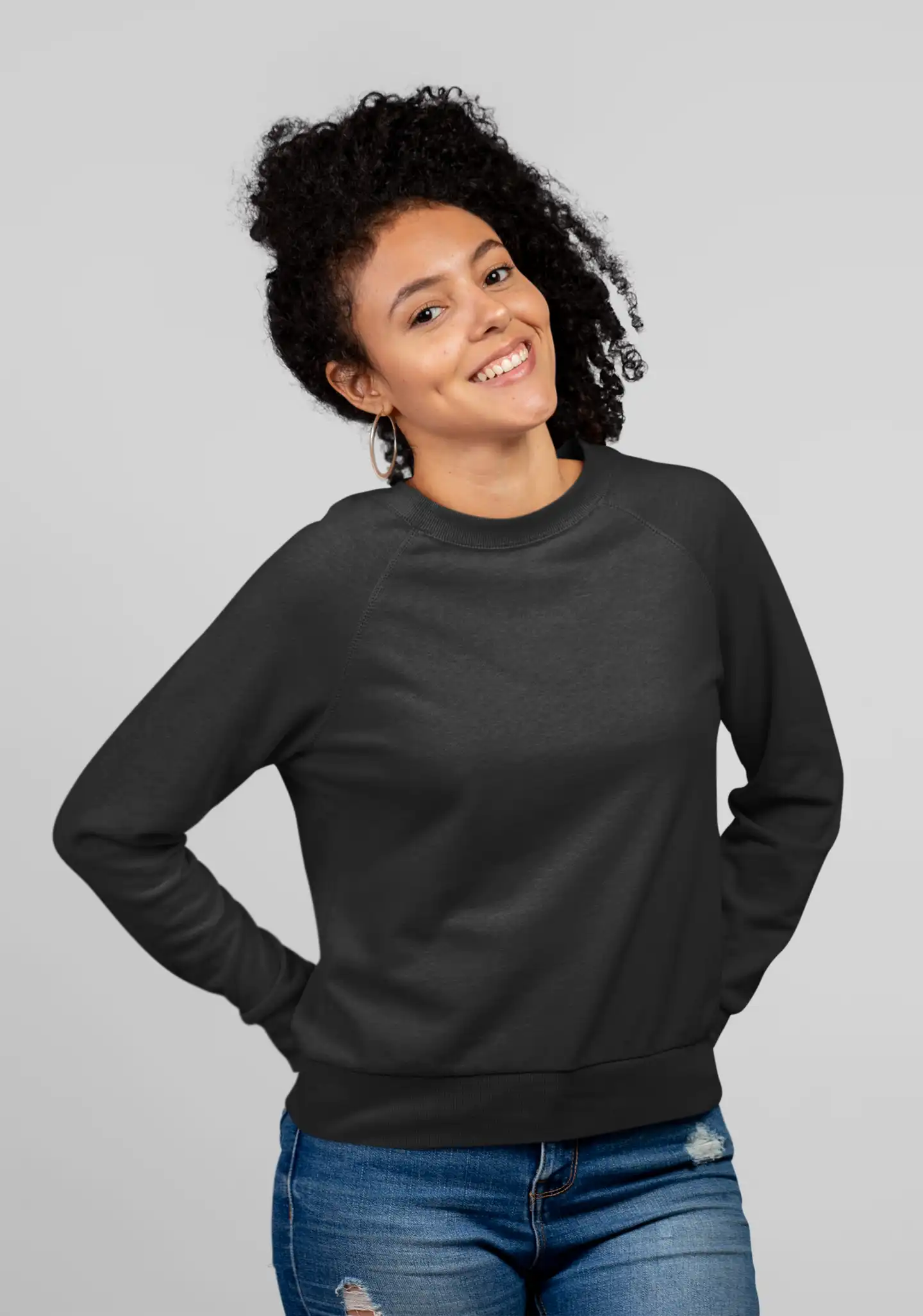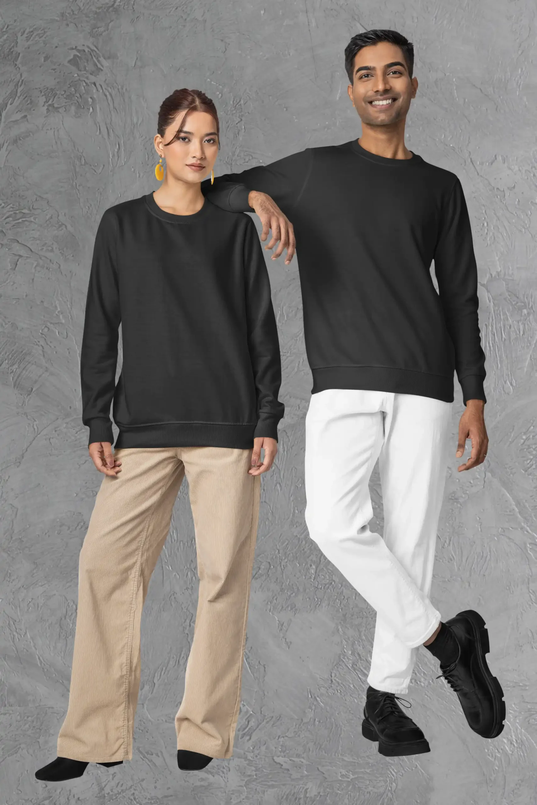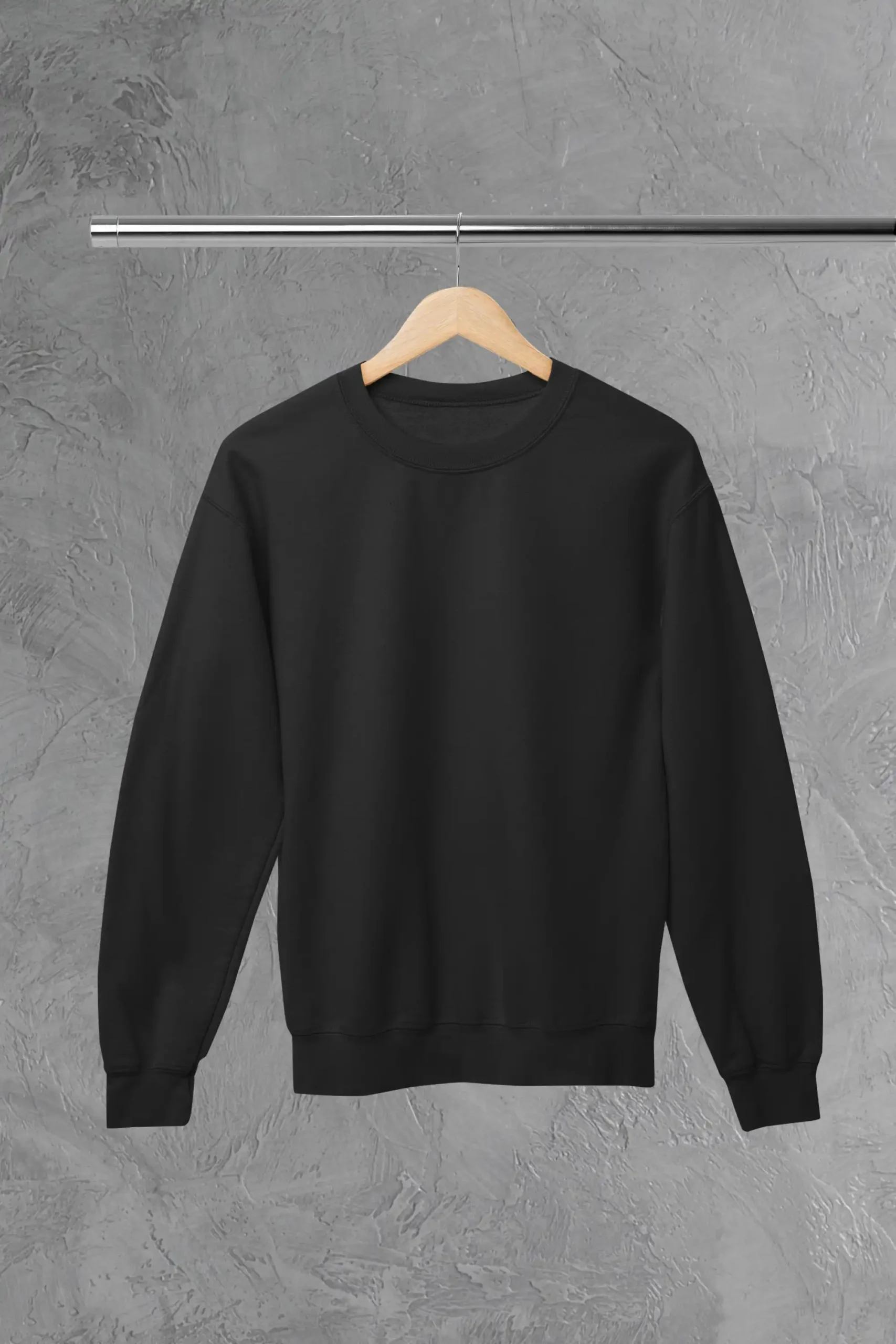 A classic black sweatshirt crafted from 300 GSM cotton blend fabric for warmth, comfort, and everyday wear.