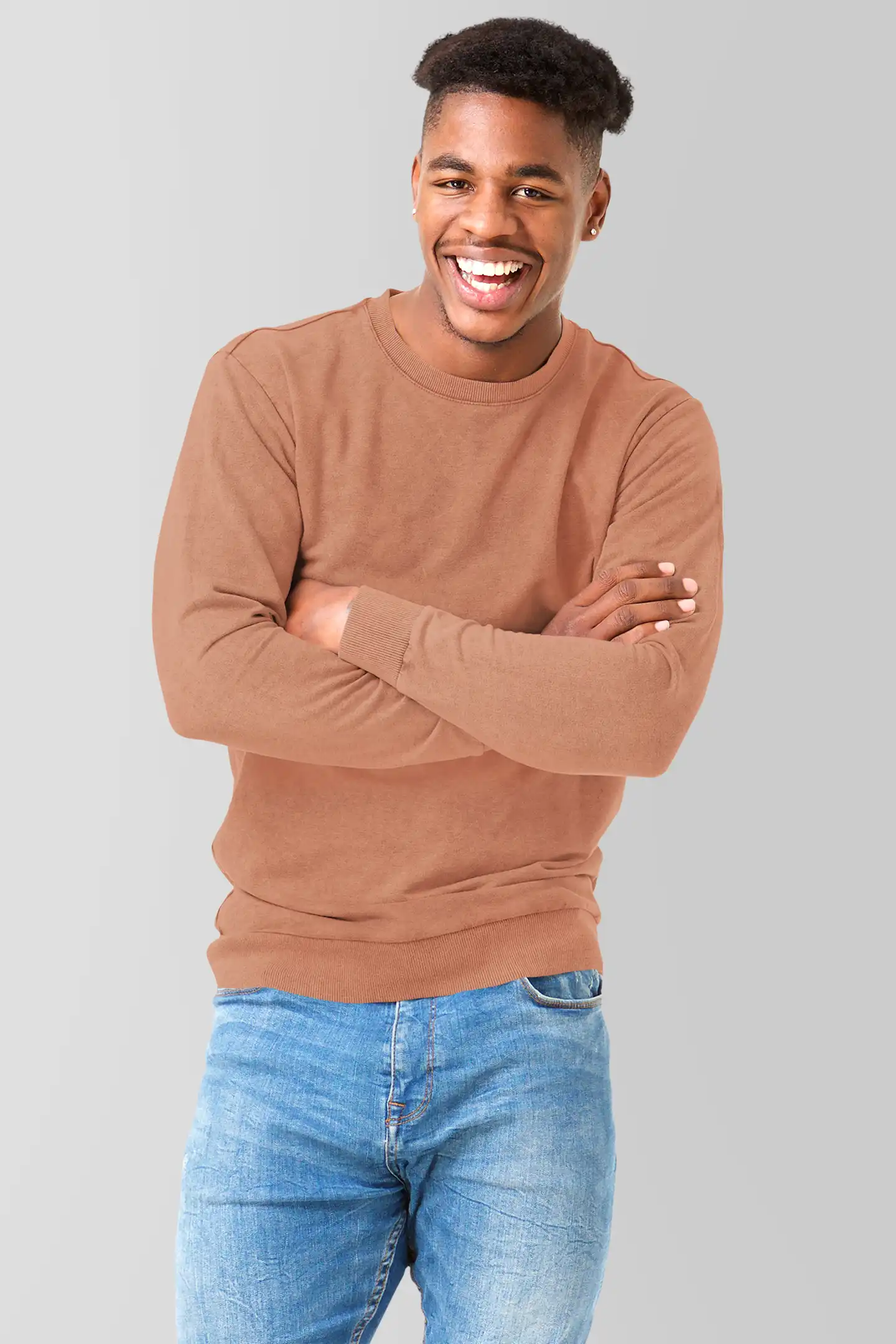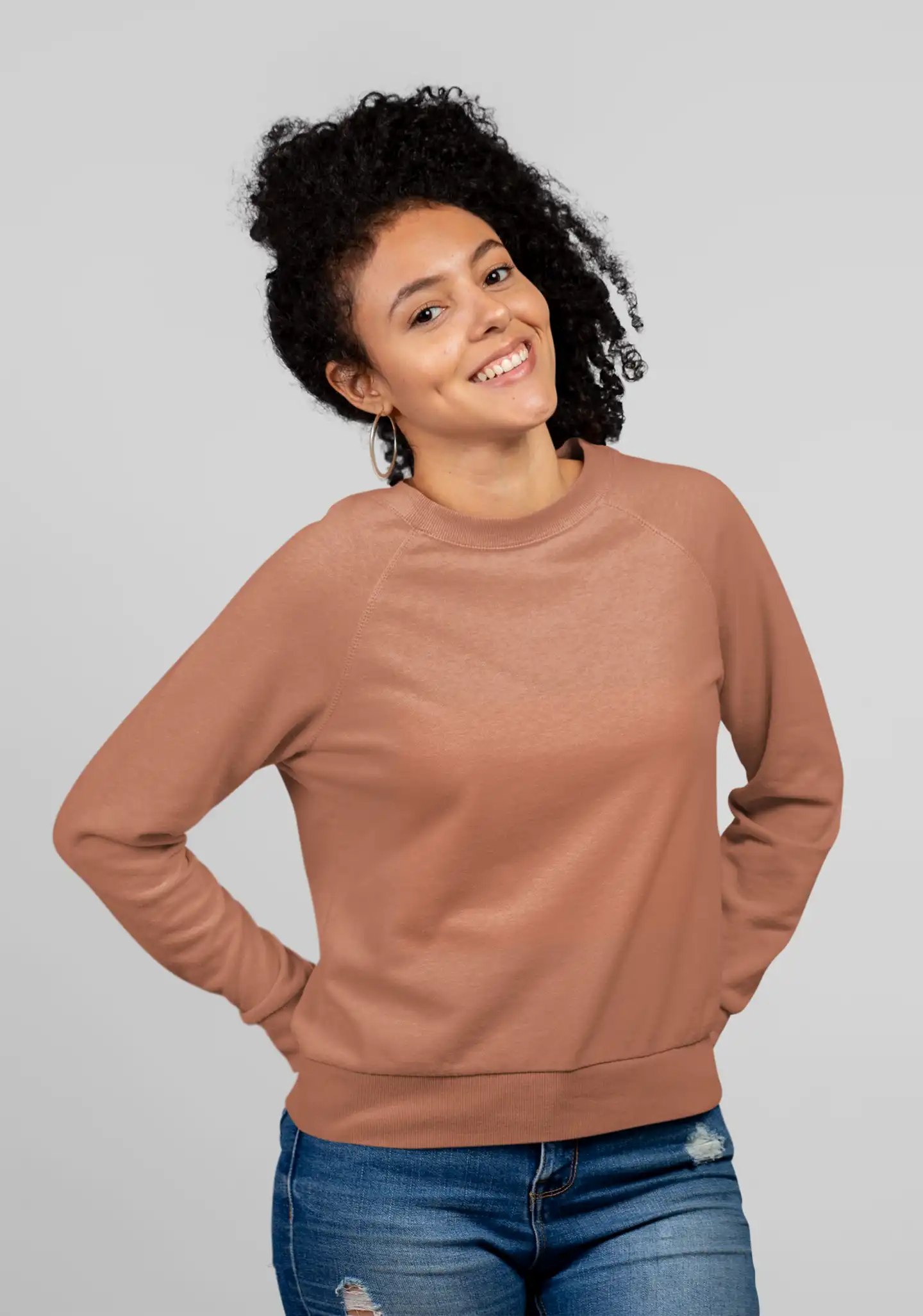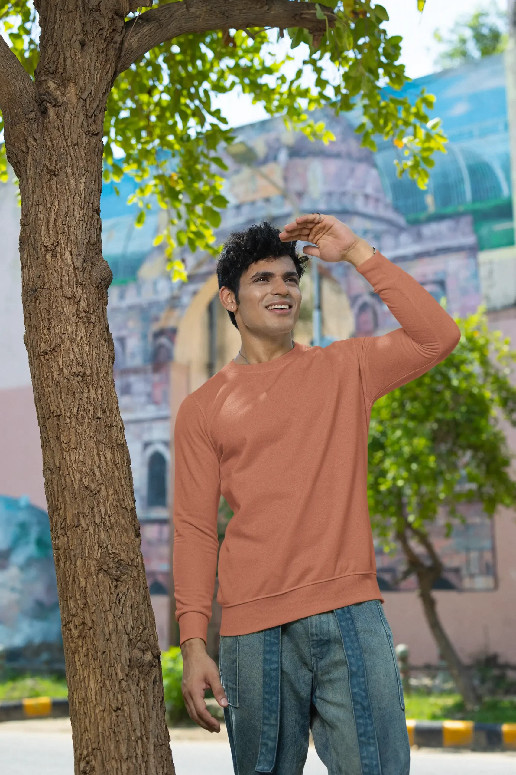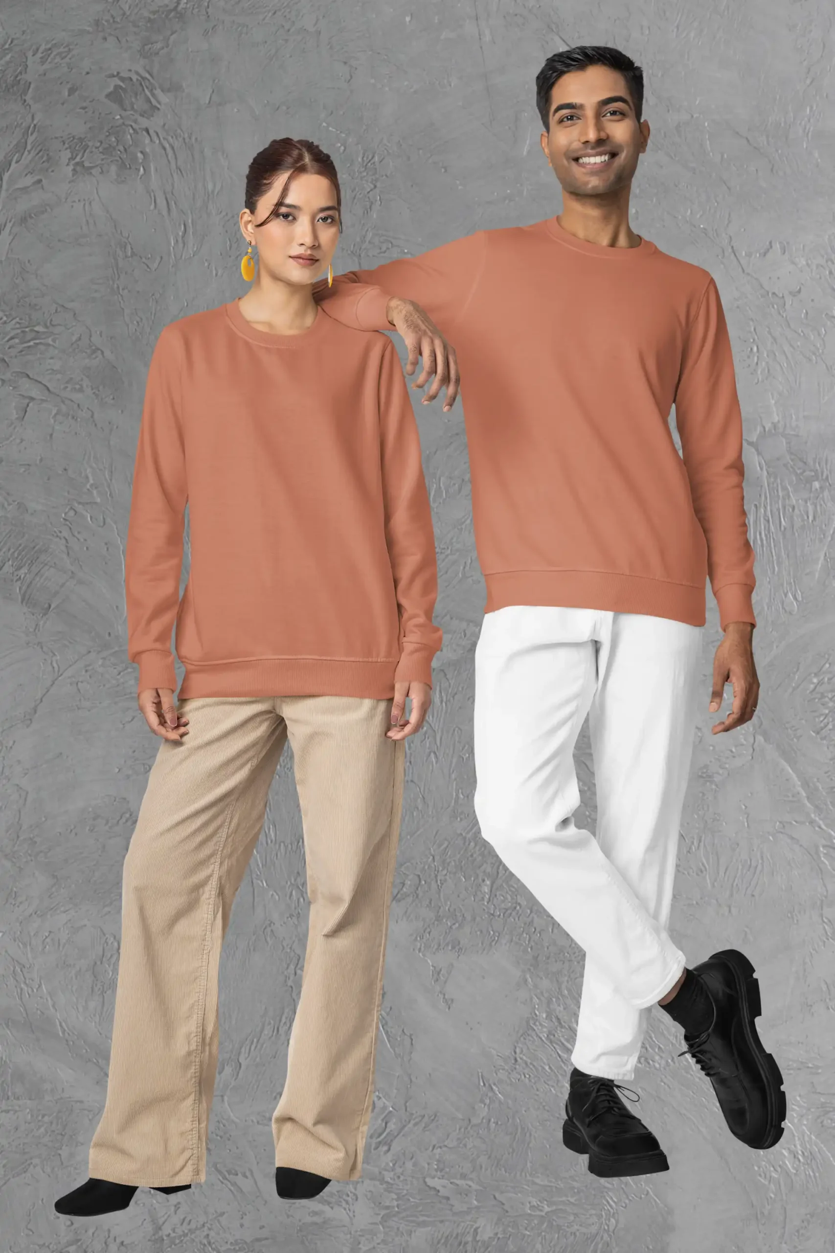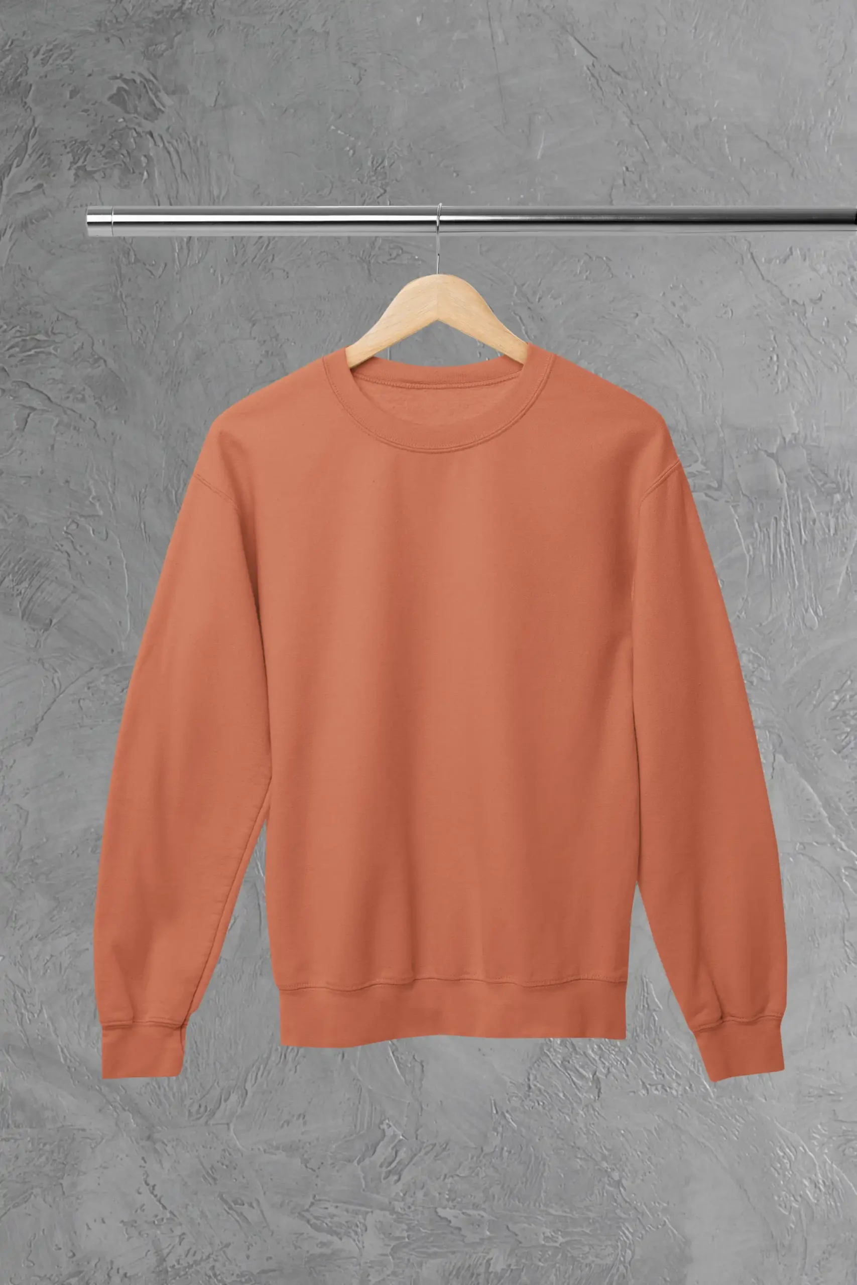 A vibrant coral sweatshirt made from 300 GSM cotton blend fabric for breathable comfort and everyday style.