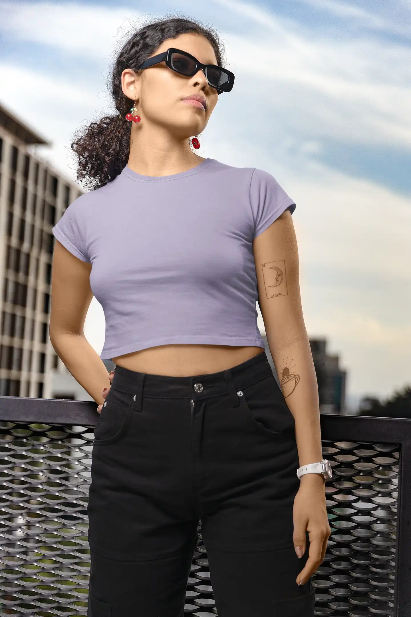 Soft lavender crop tee made from premium 180 GSM cotton for everyday comfort and style.