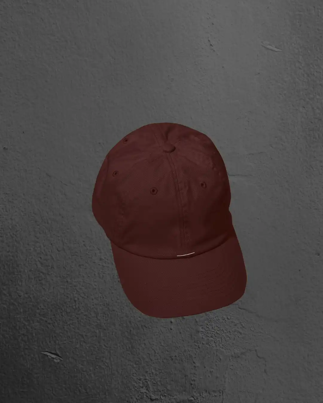 A maroon baseball cap made from 280 GSM cotton drill fabric — breathable, durable, and designed to stand out subtly.