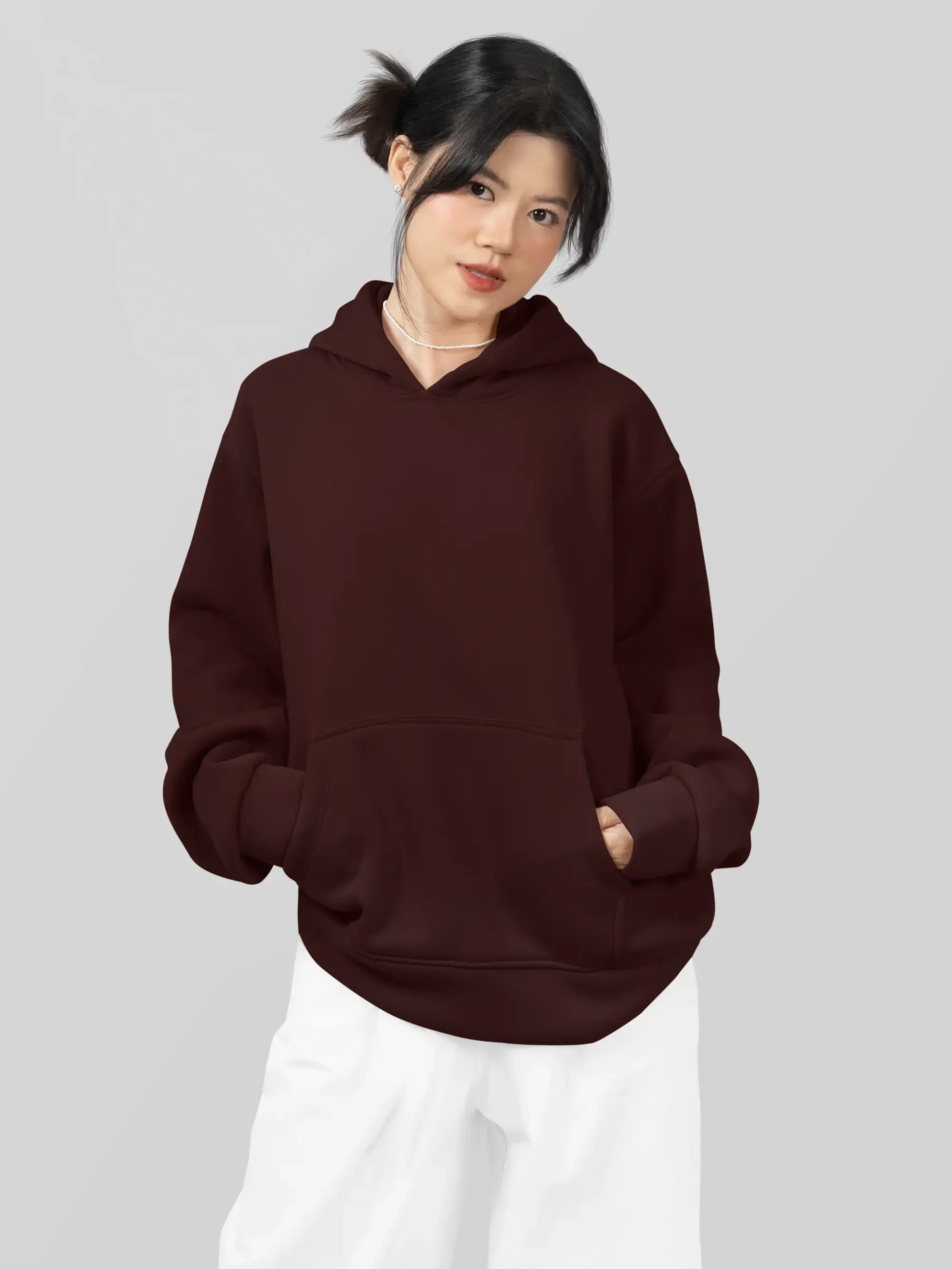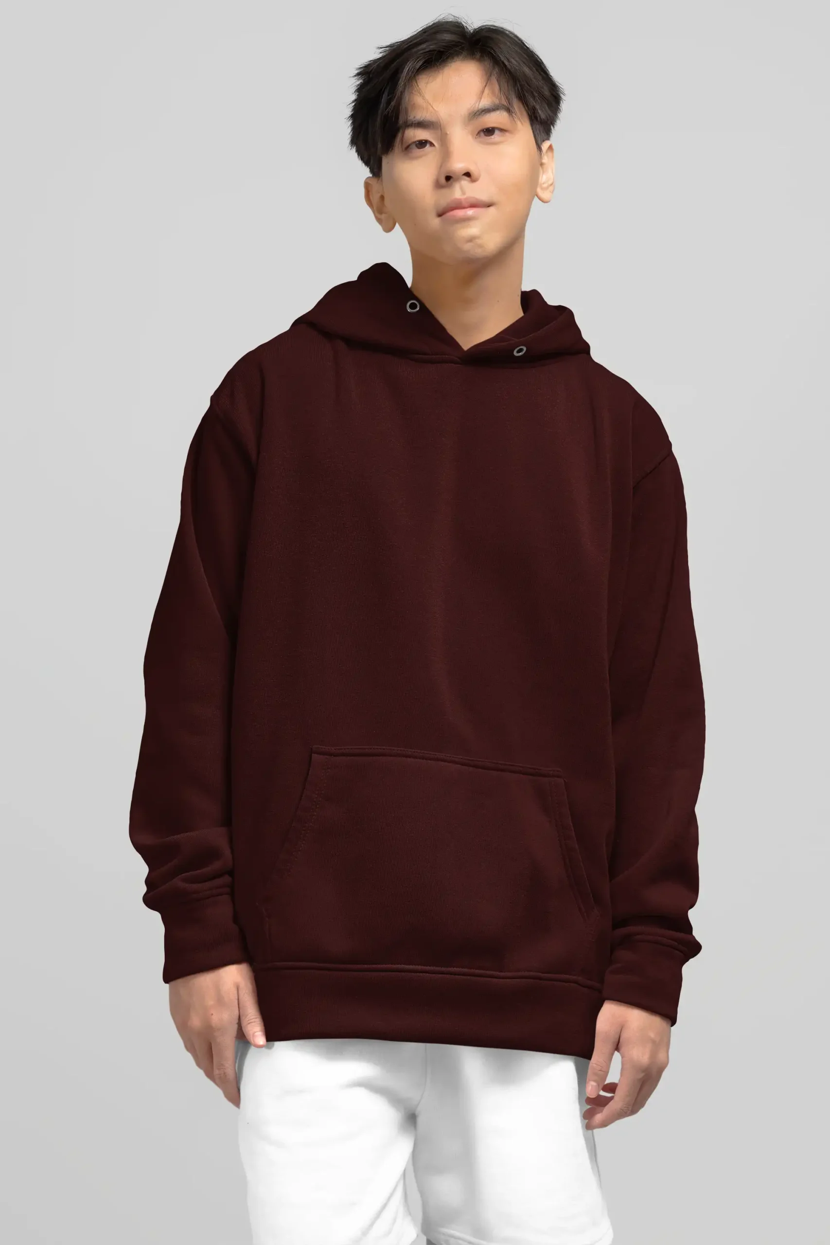 A rich maroon oversized hoodie made from premium 400 GSM cotton blend fabric for everyday comfort.
