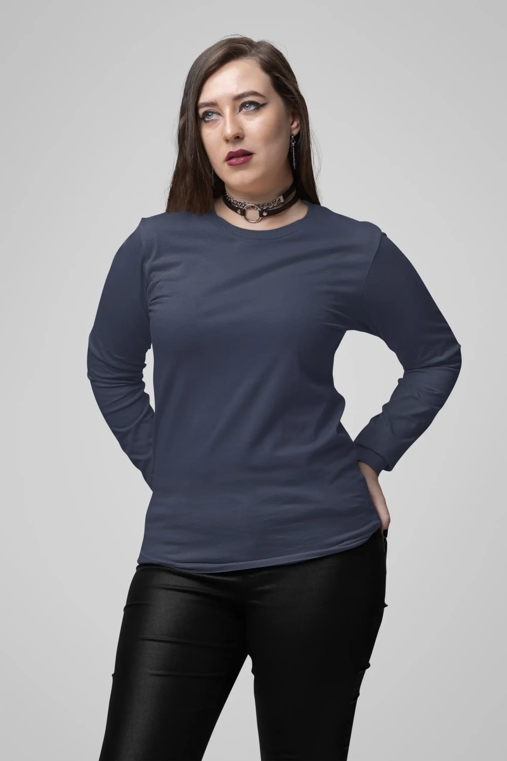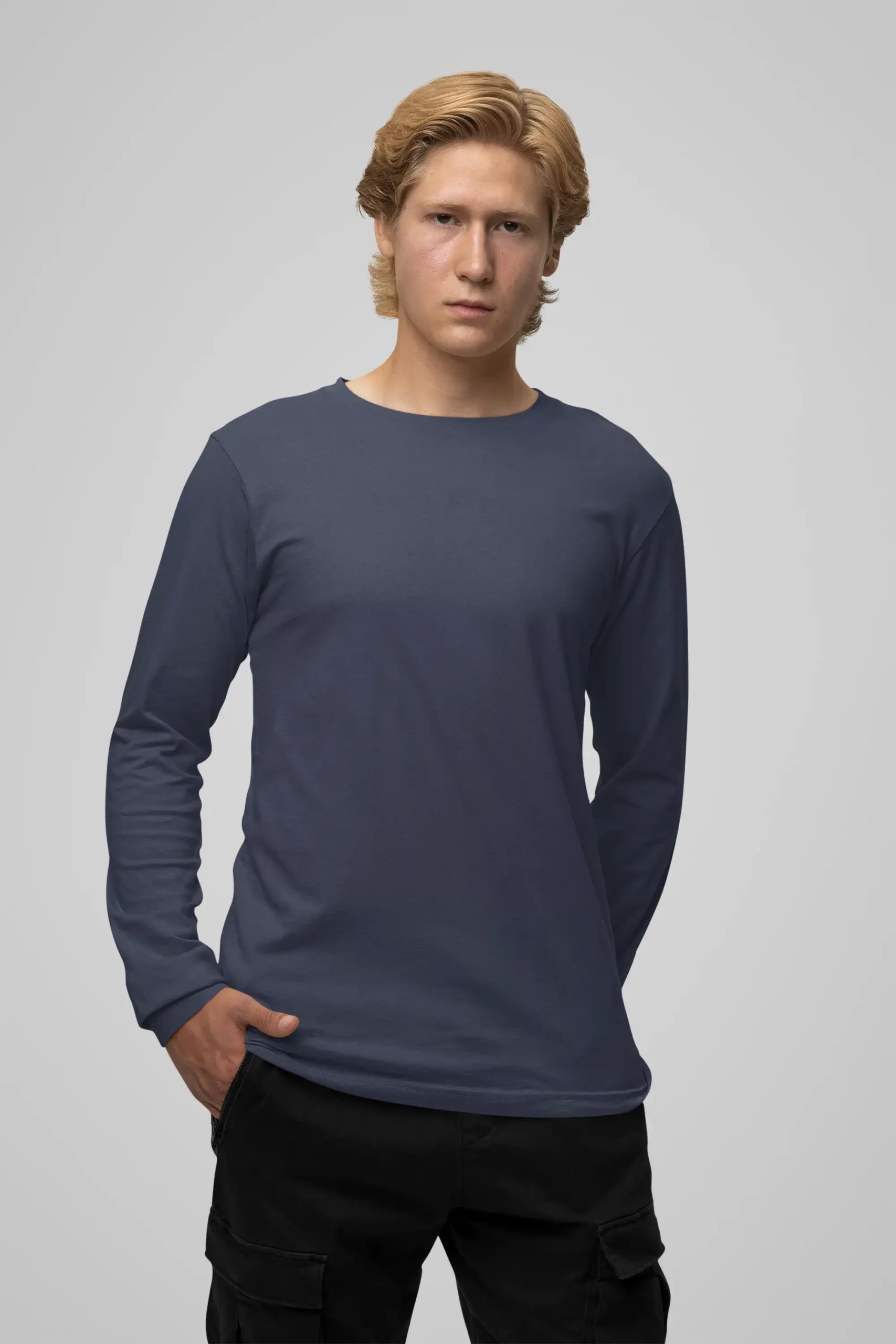 Deep navy full sleeve tee crafted from 180 GSM cotton for versatile, all-season wear.