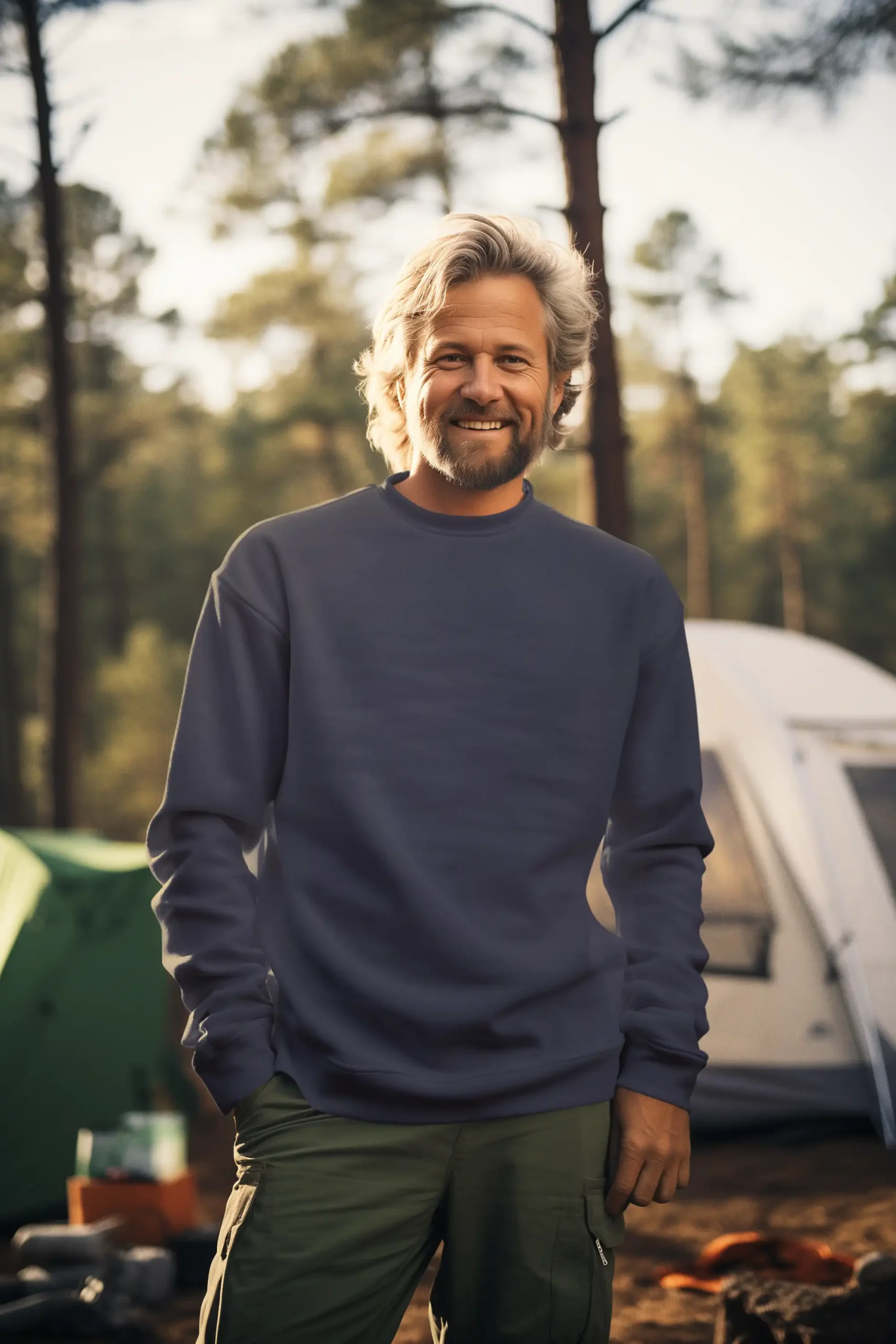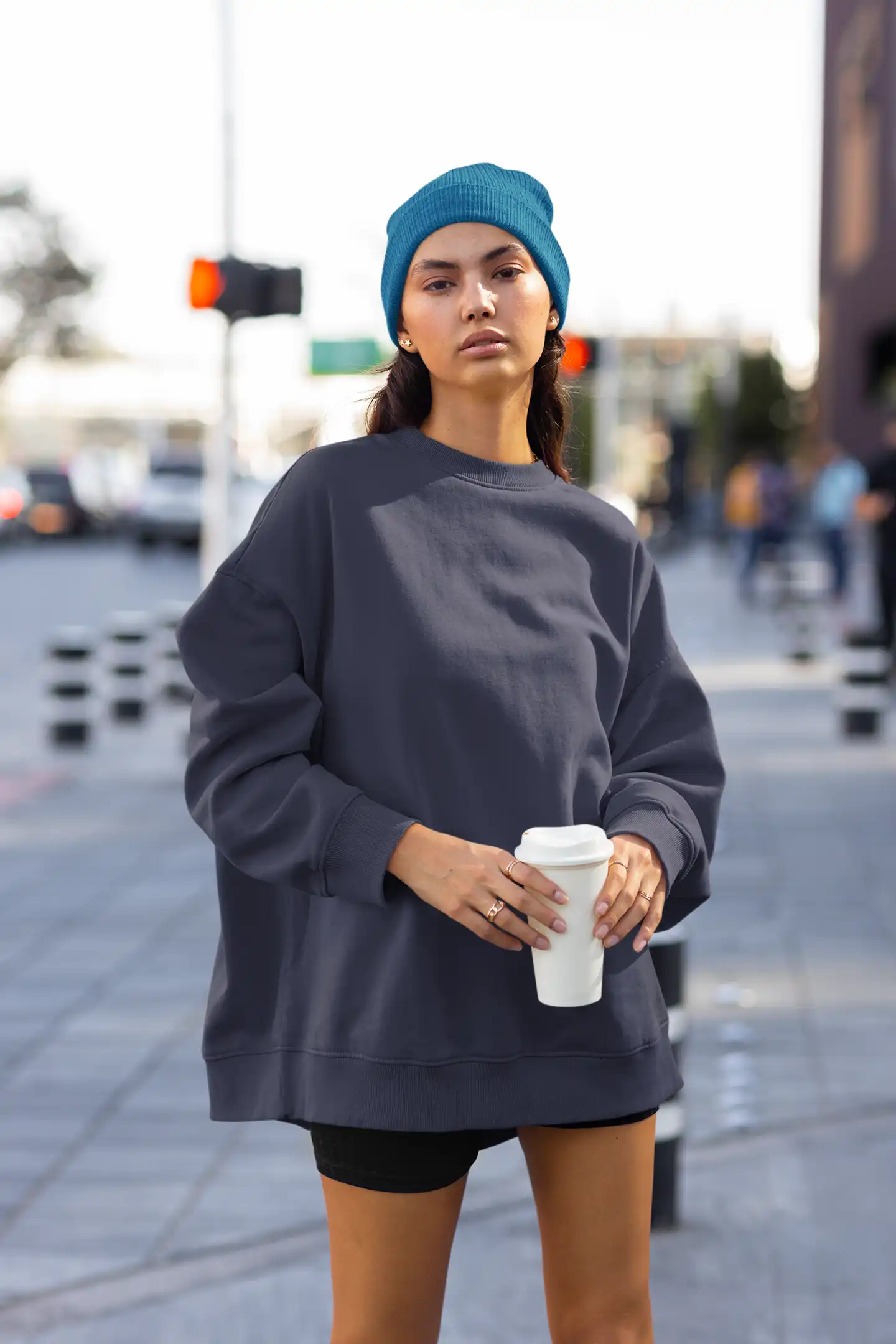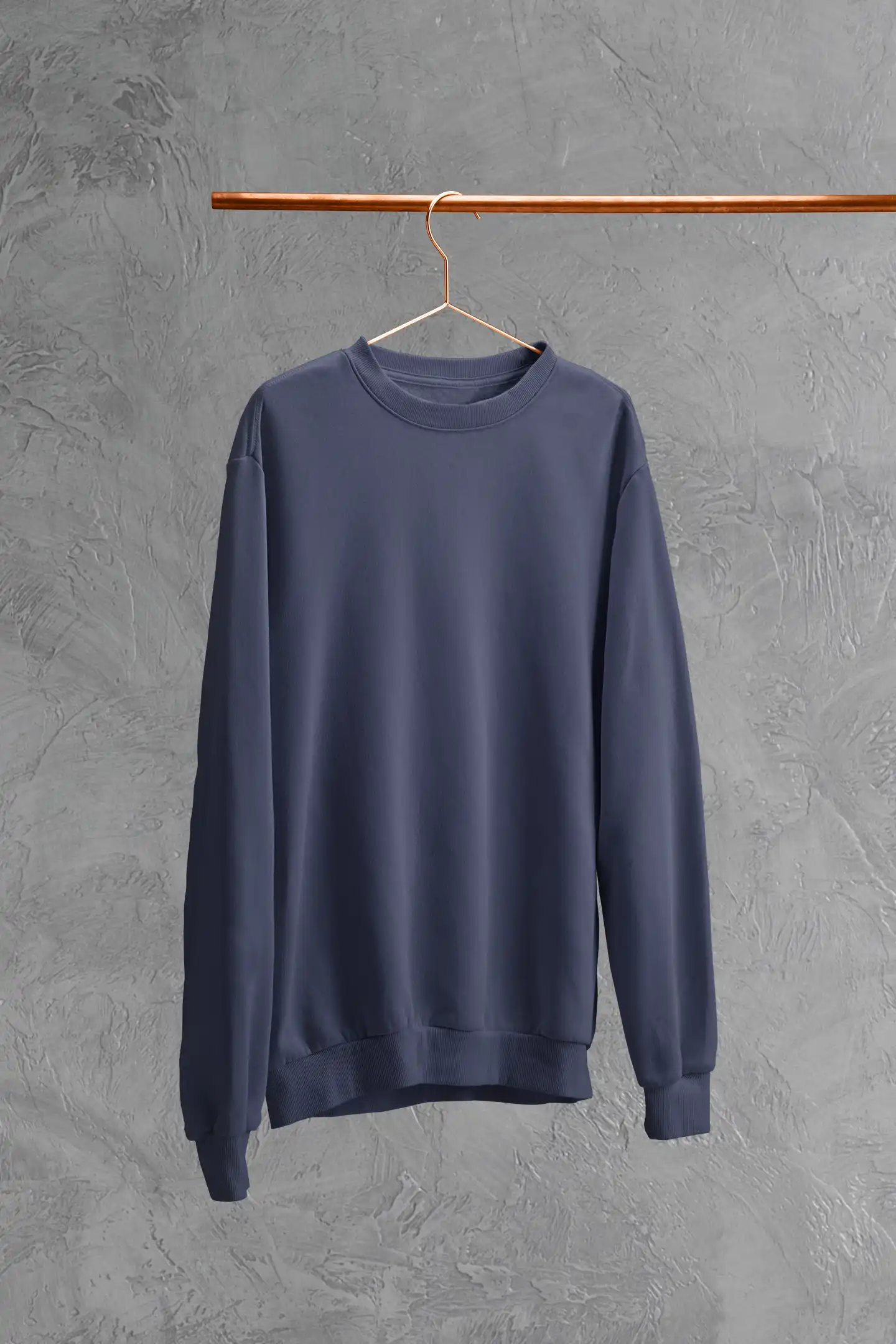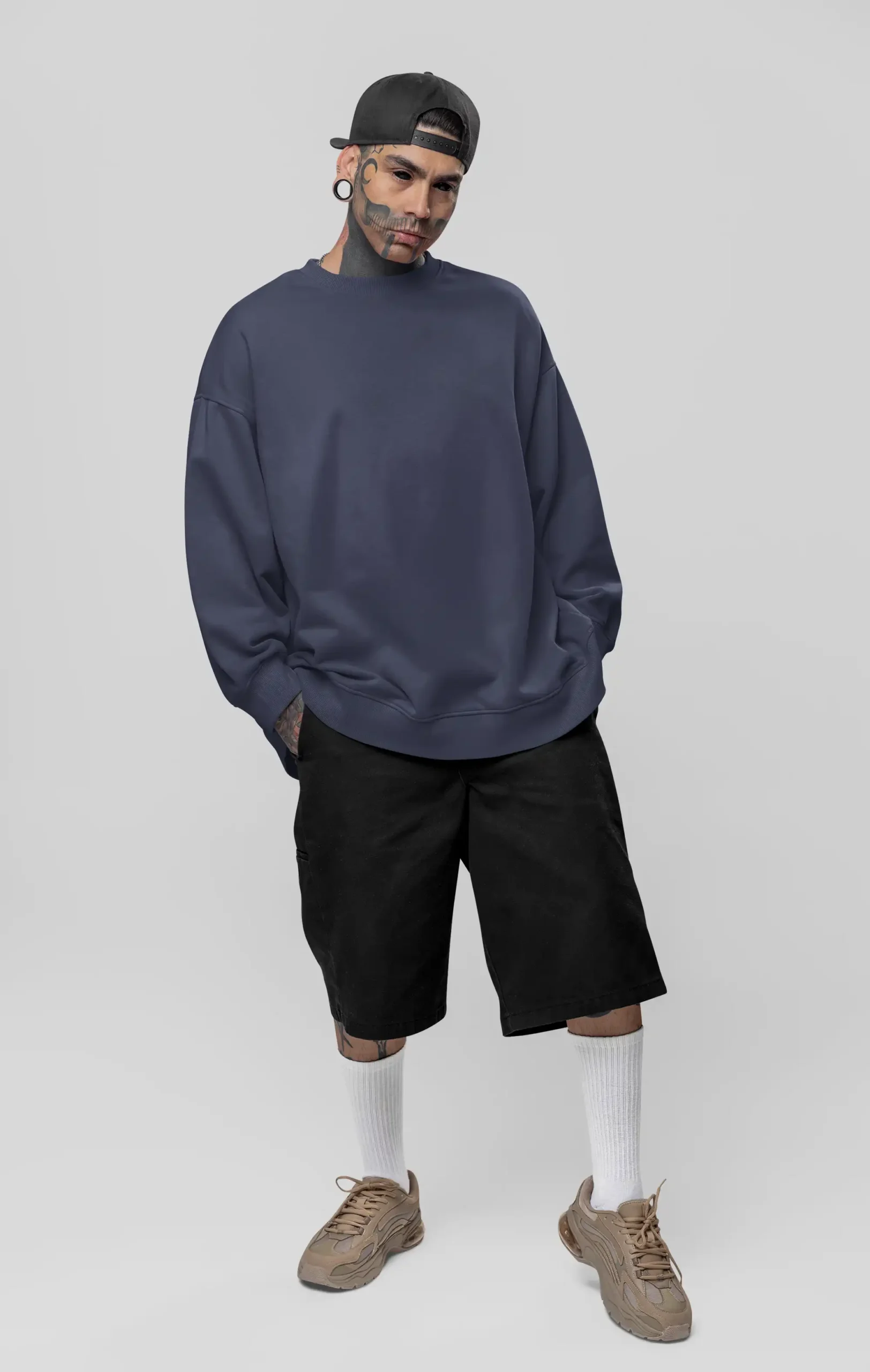 A classic navy blue oversized sweatshirt made from 400 GSM cotton blend fabric for warmth, durability, and everyday comfort.