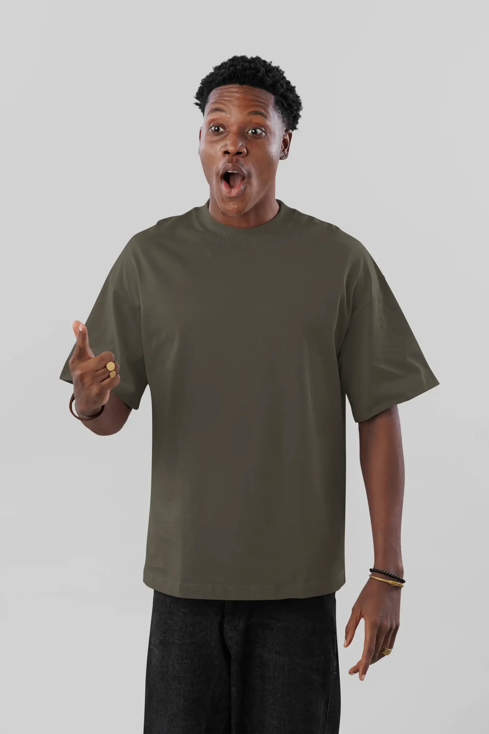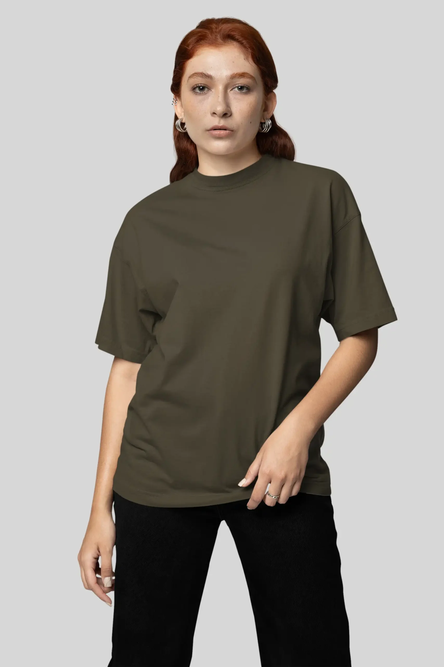 Earthy olive green with a premium oversized silhouette.