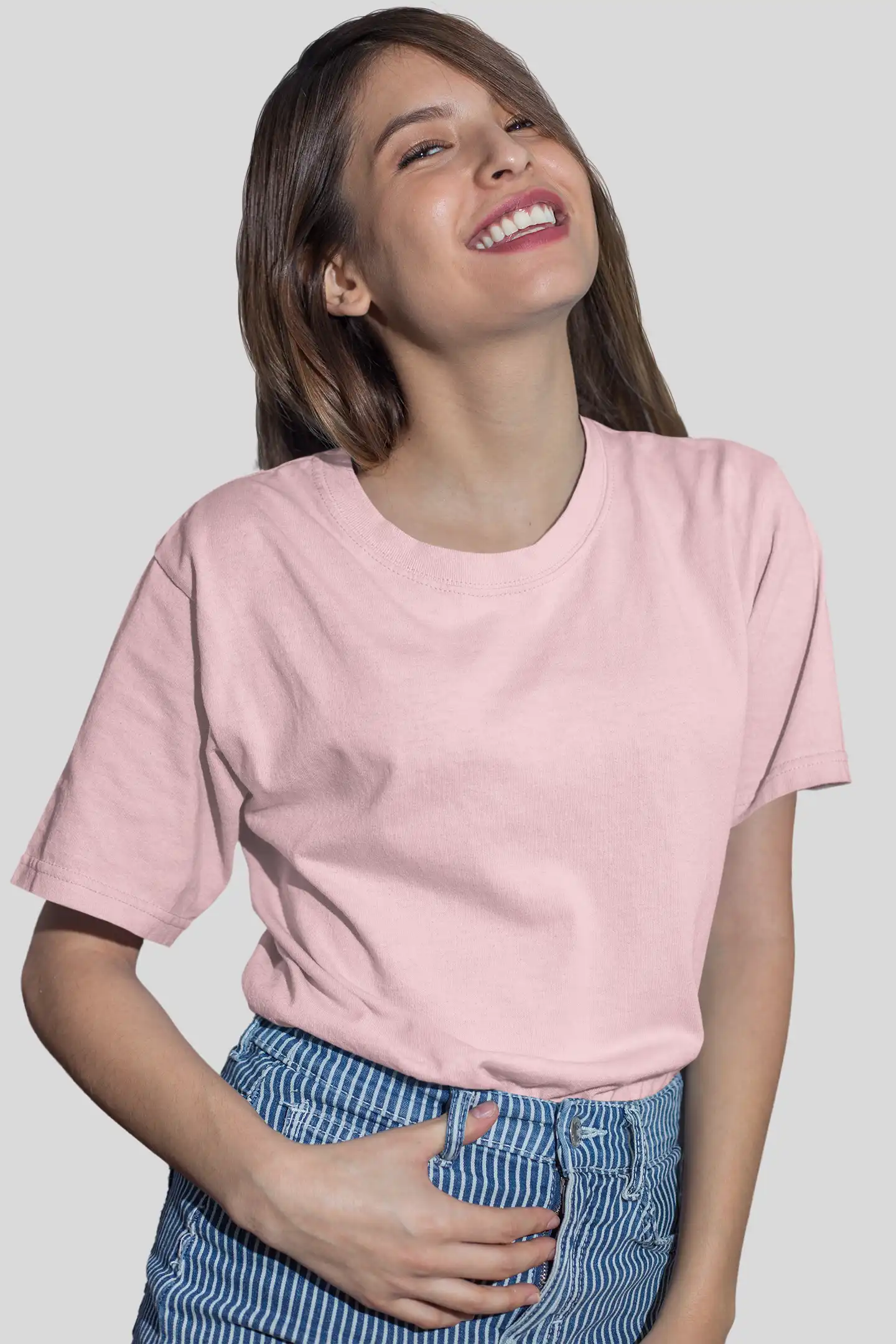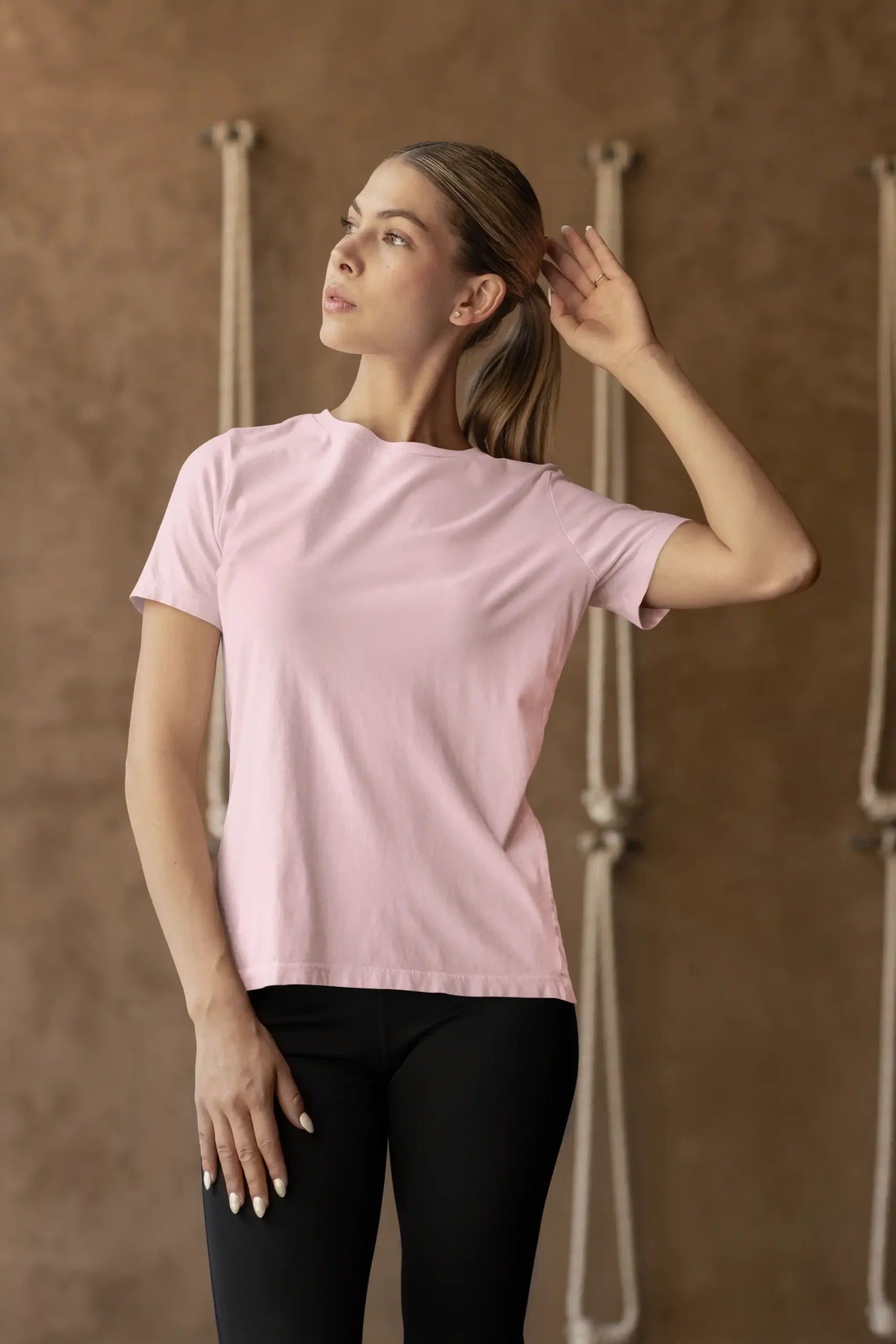 Soft light pink with stretch and structure — comfortable, clean, and versatile.