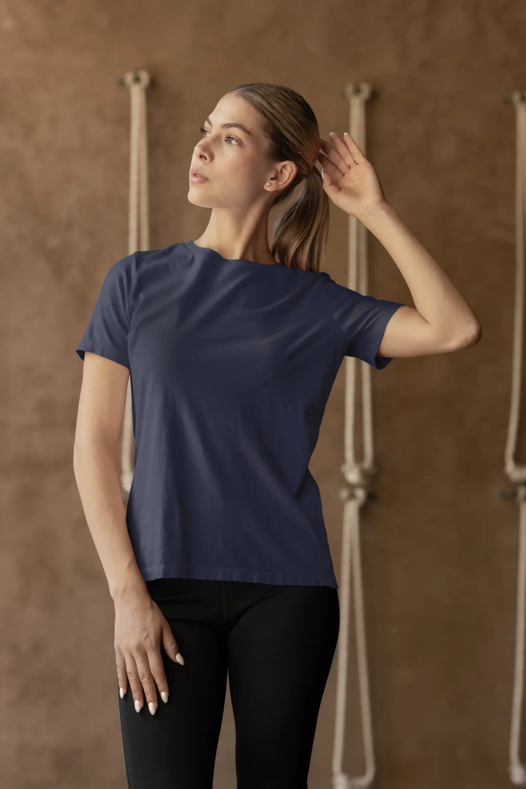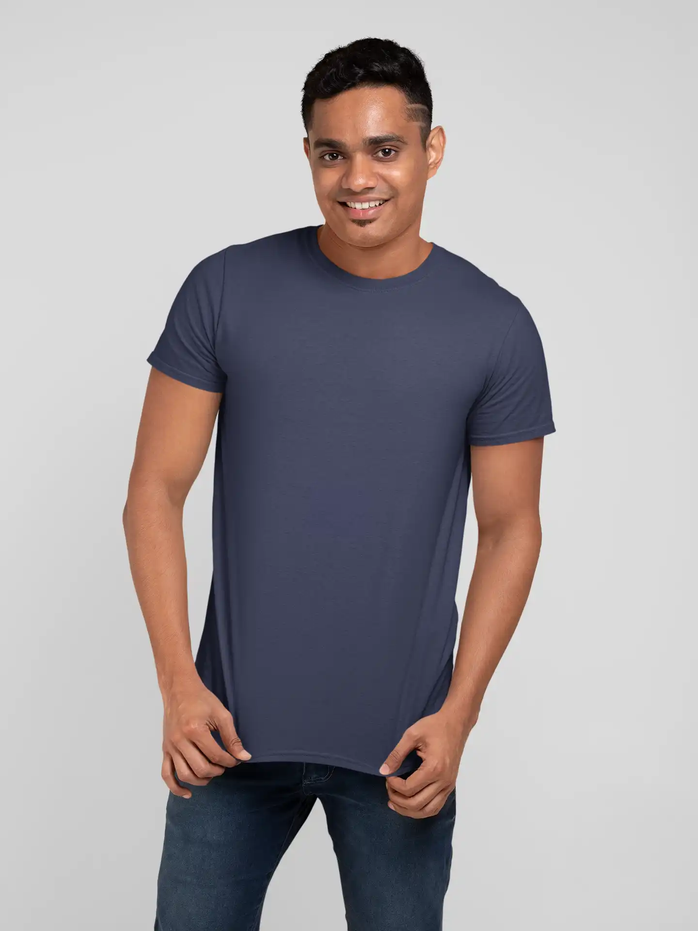 The Mad4street Solids Cotton Stretch T-Shirt (Navy Blue) offers a refined alternative to black, with the same 240 GSM stretch performance. The fabric provides a smooth, structured feel with just enough flexibility for all-day comfort. Ideal for casual, smart-casual, and streetwear styling.
