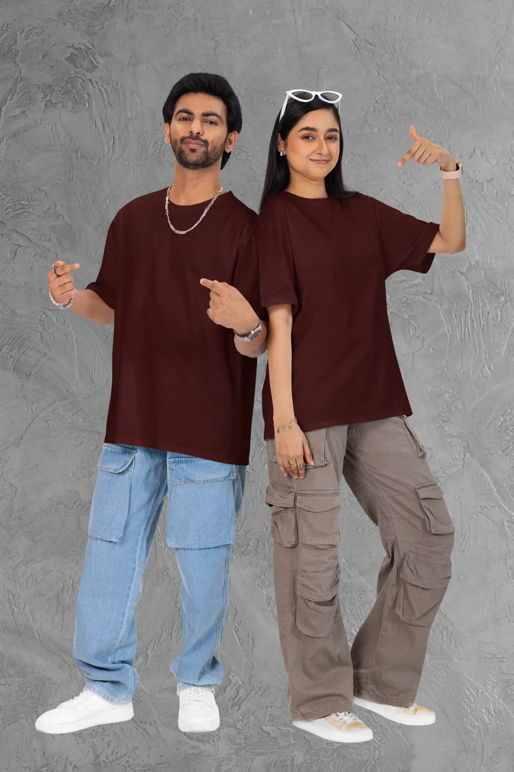 M4S Solids Terry Oversized Maroon Unisex Tee