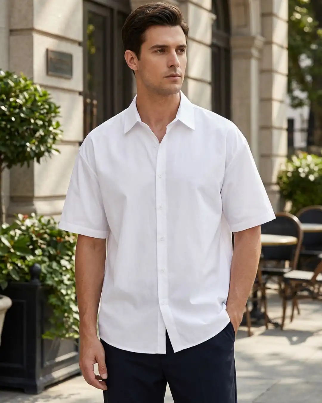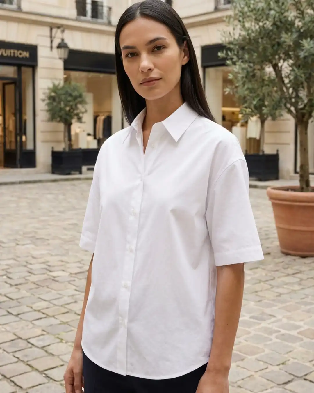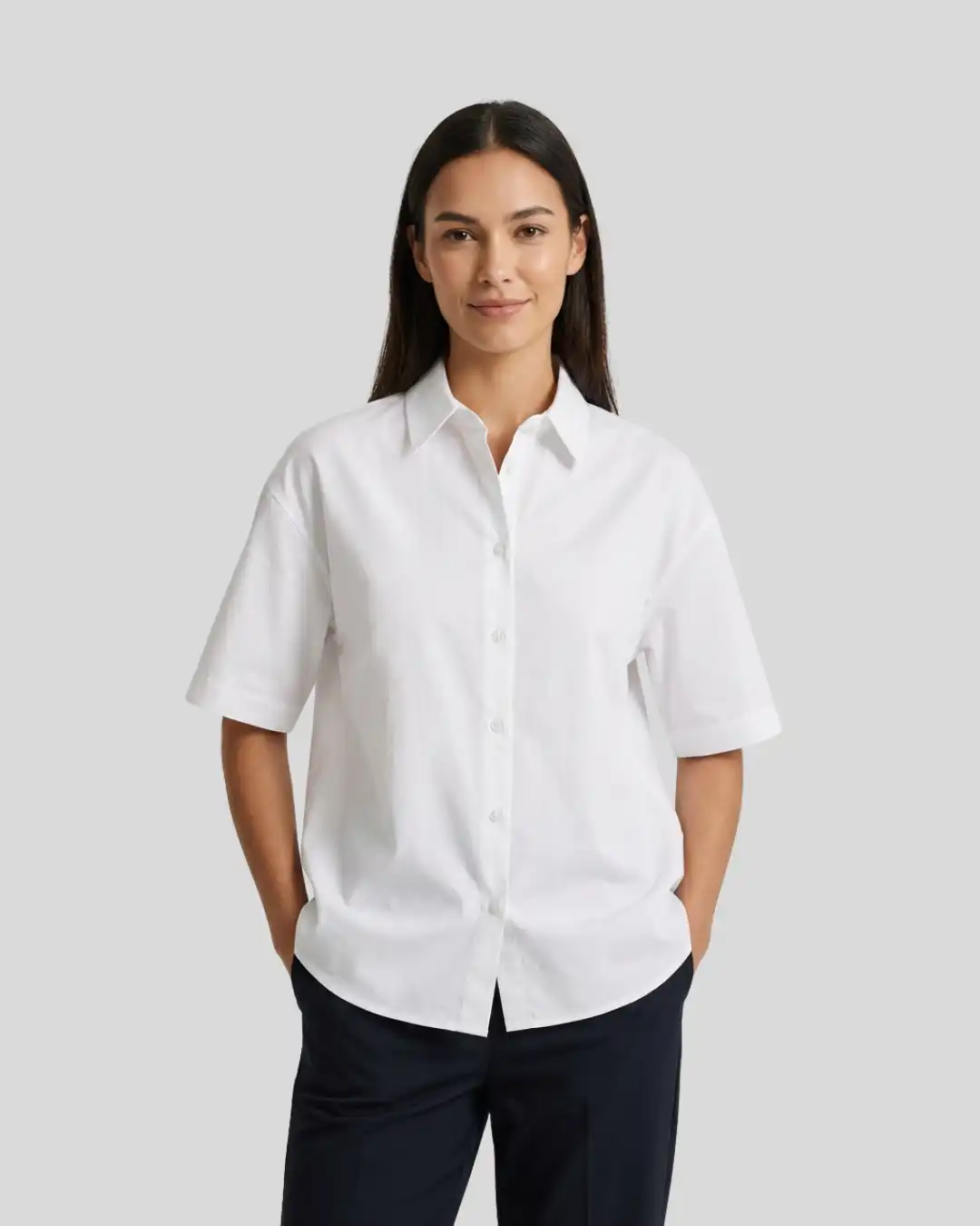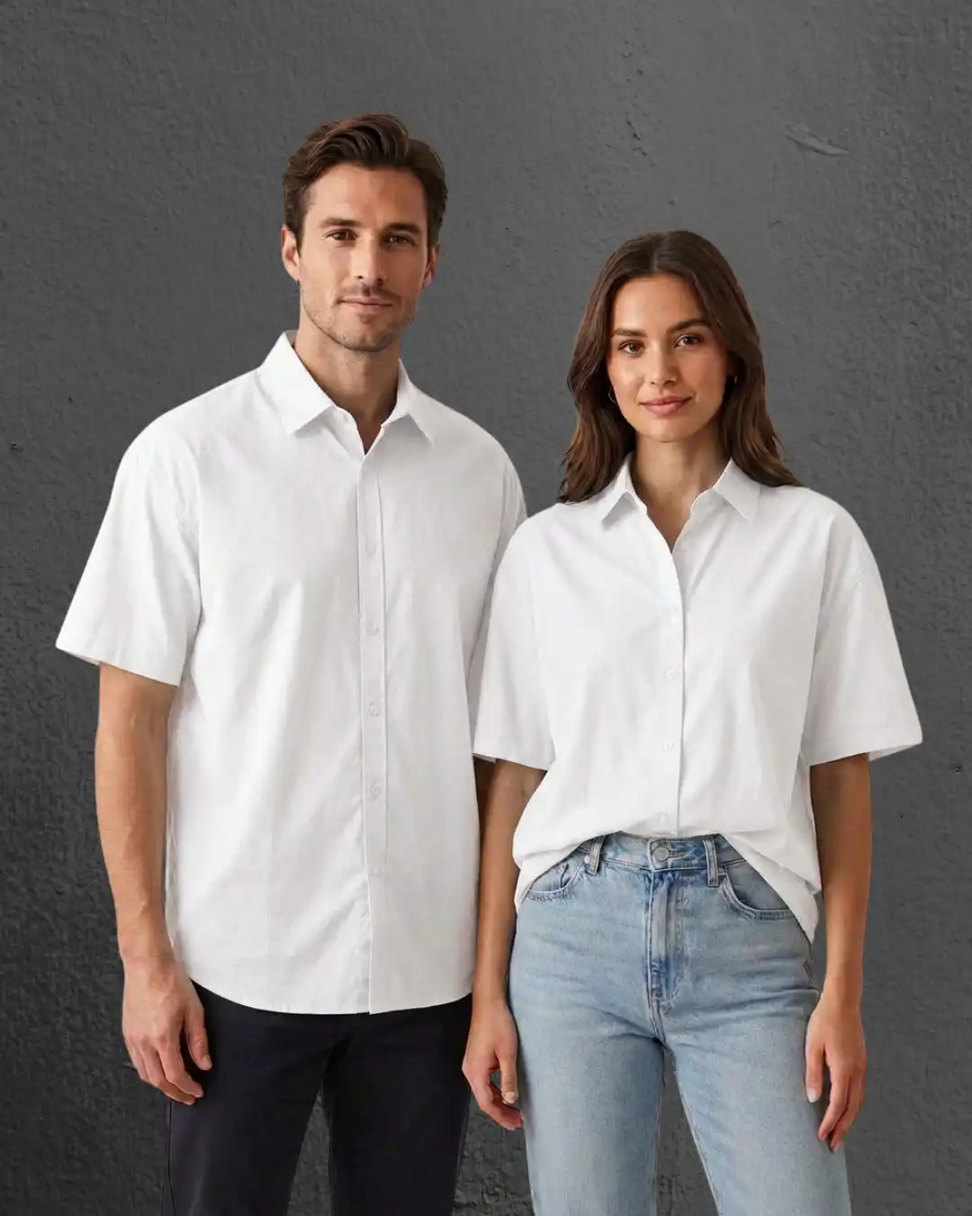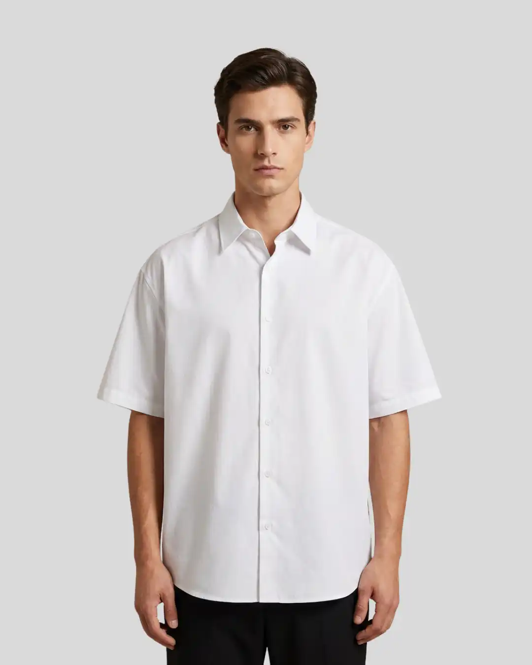 A white heavyweight cotton shirt designed for effortless fits and everyday comfort.