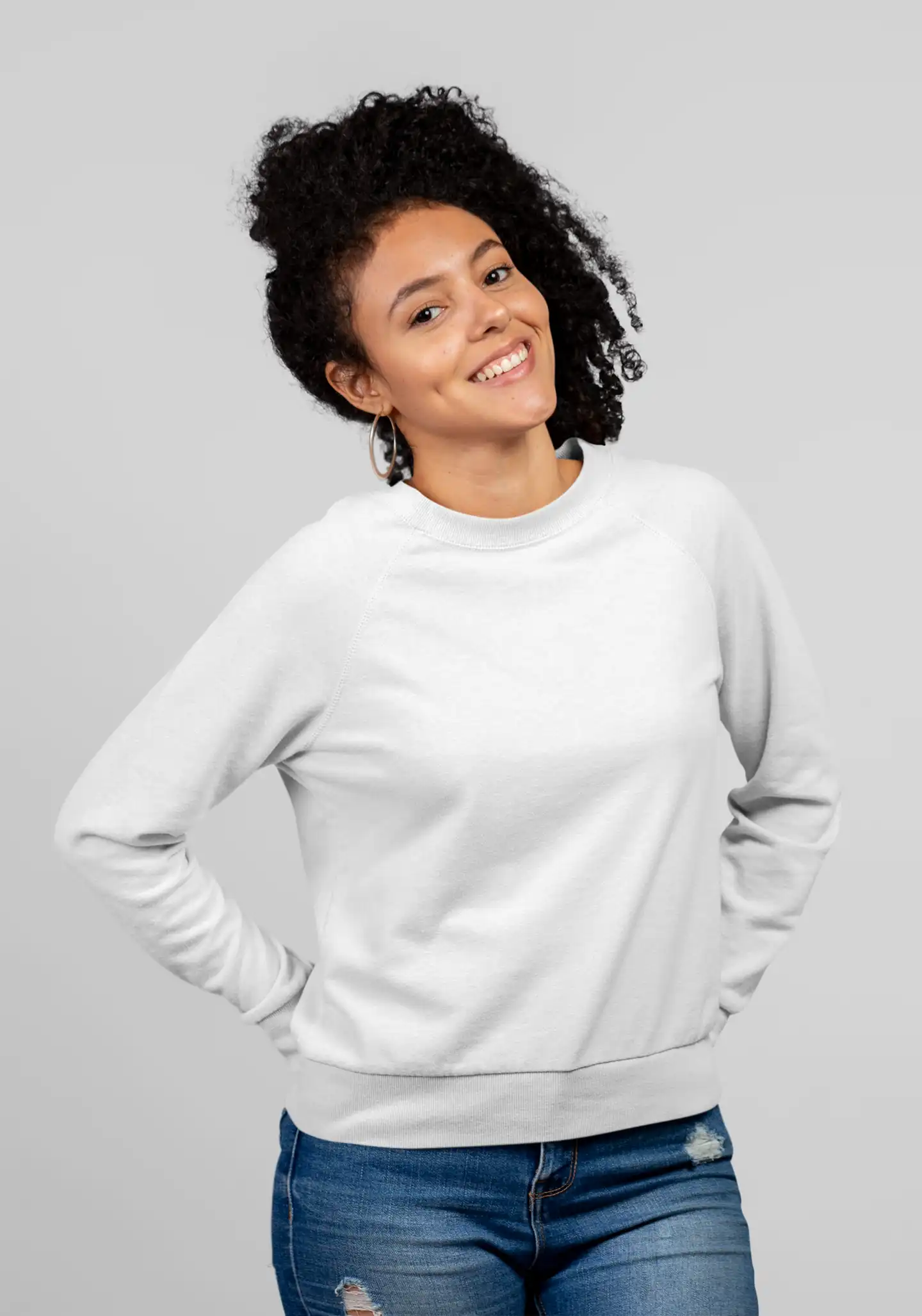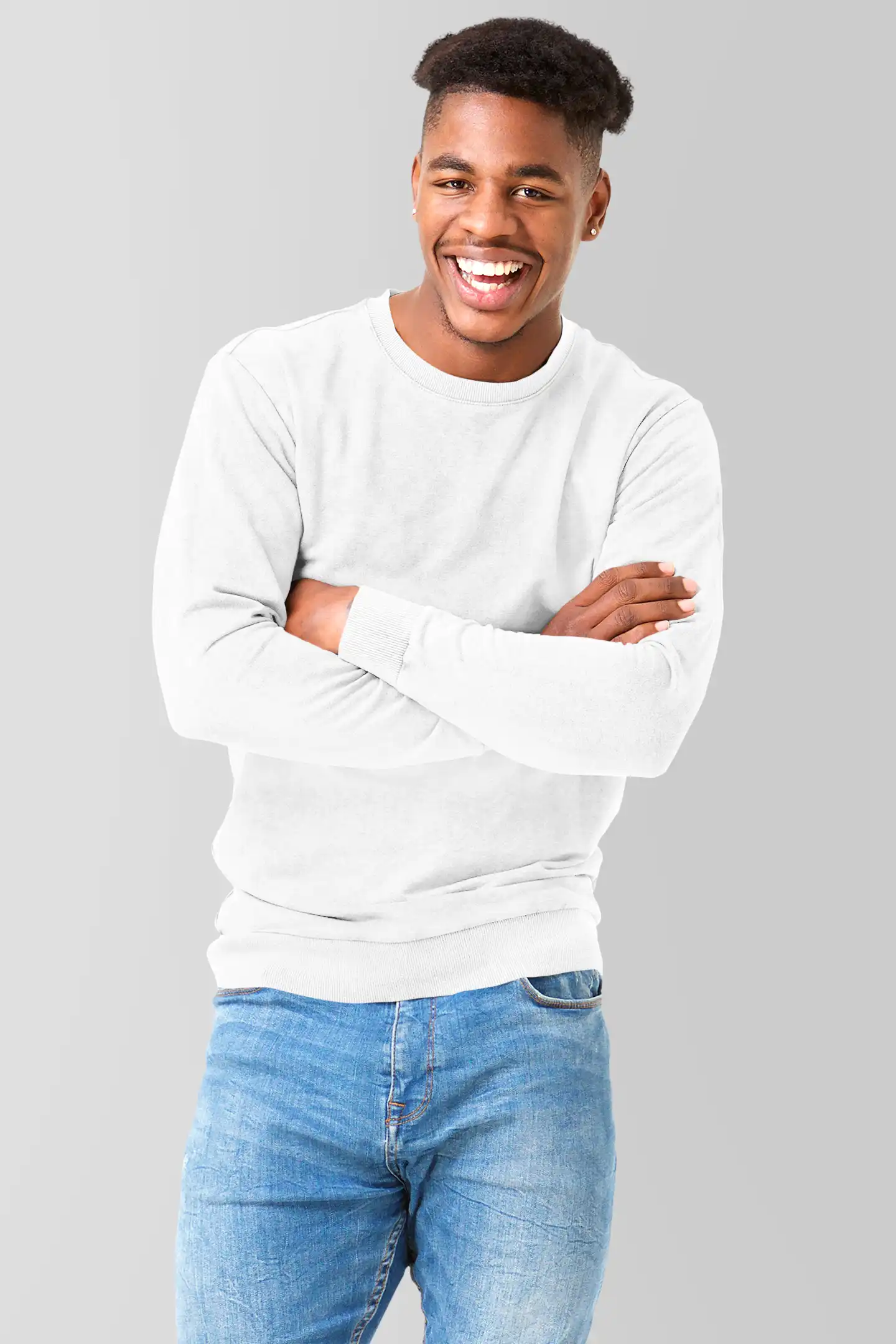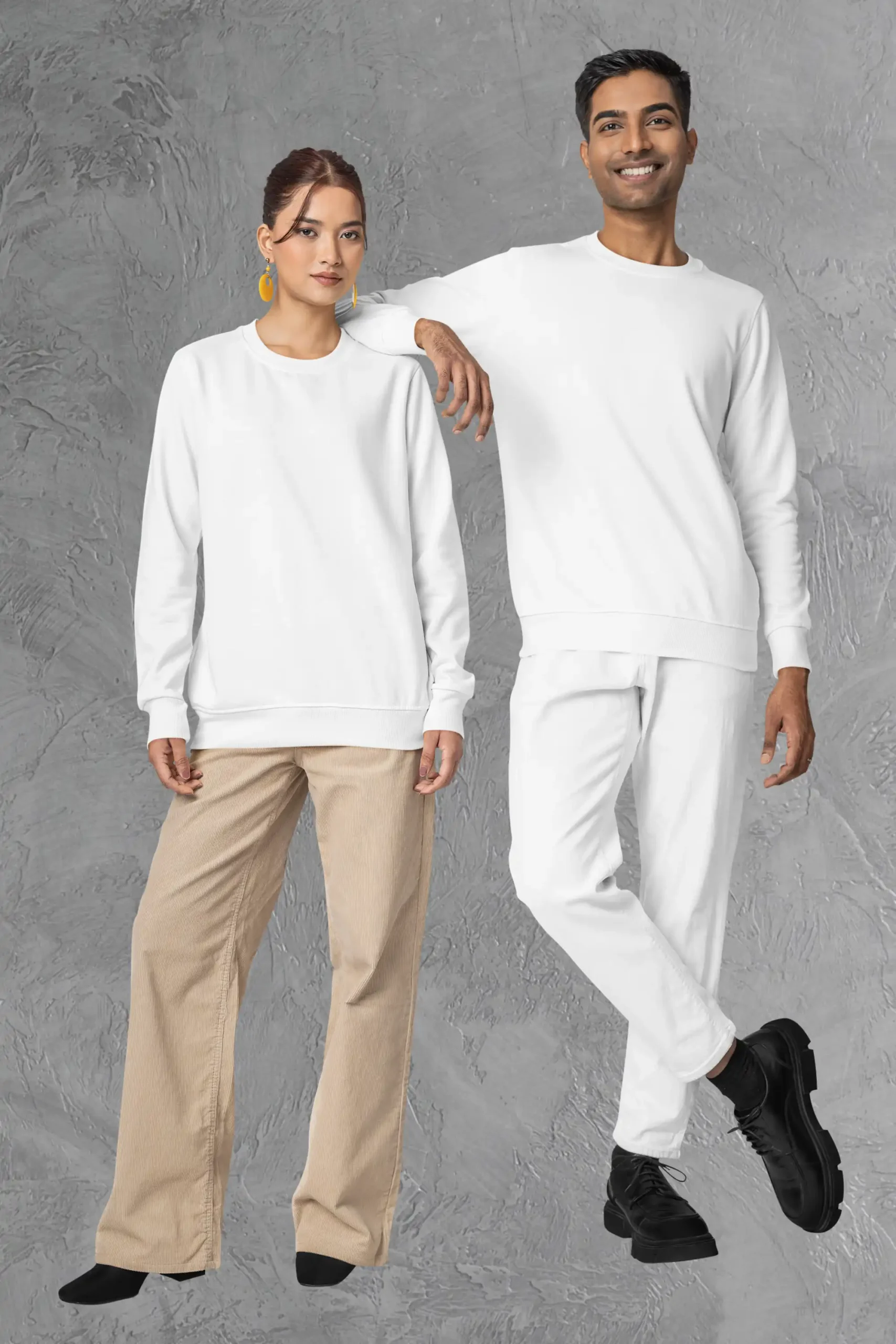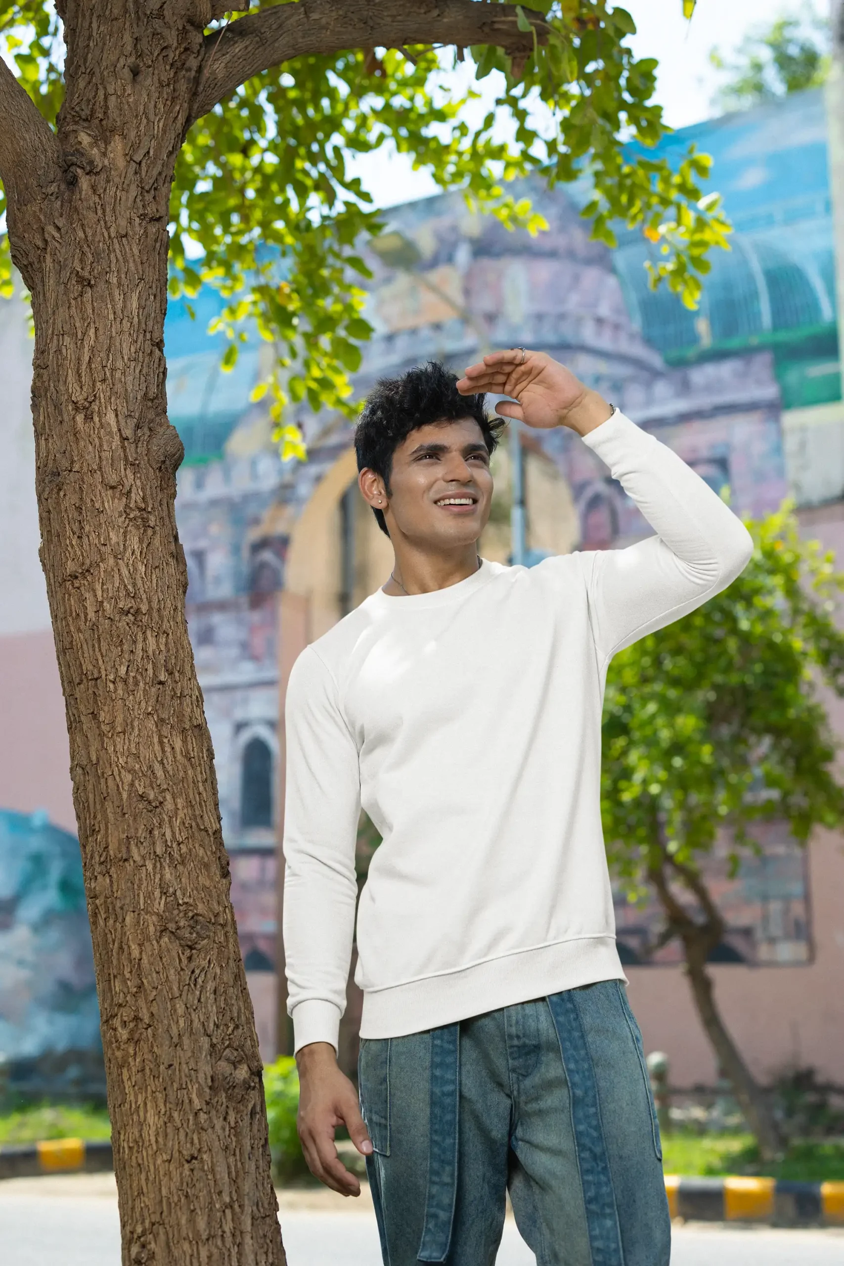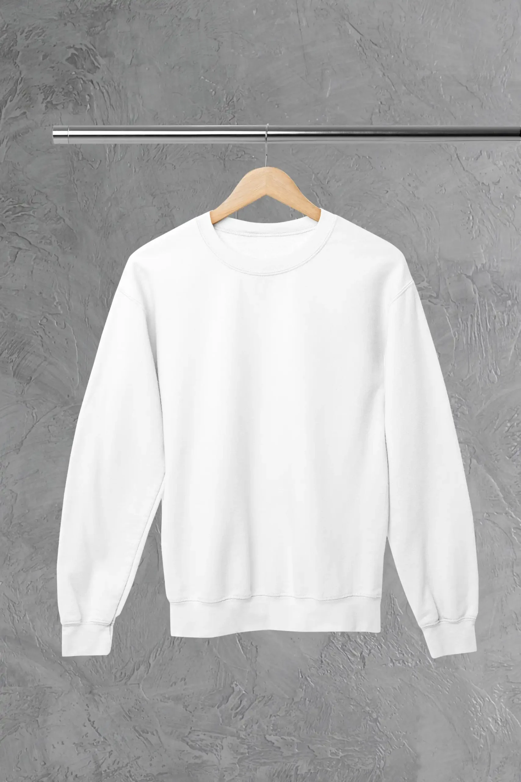 A clean white sweatshirt made from 300 GSM cotton blend fabric for everyday comfort and minimal style.