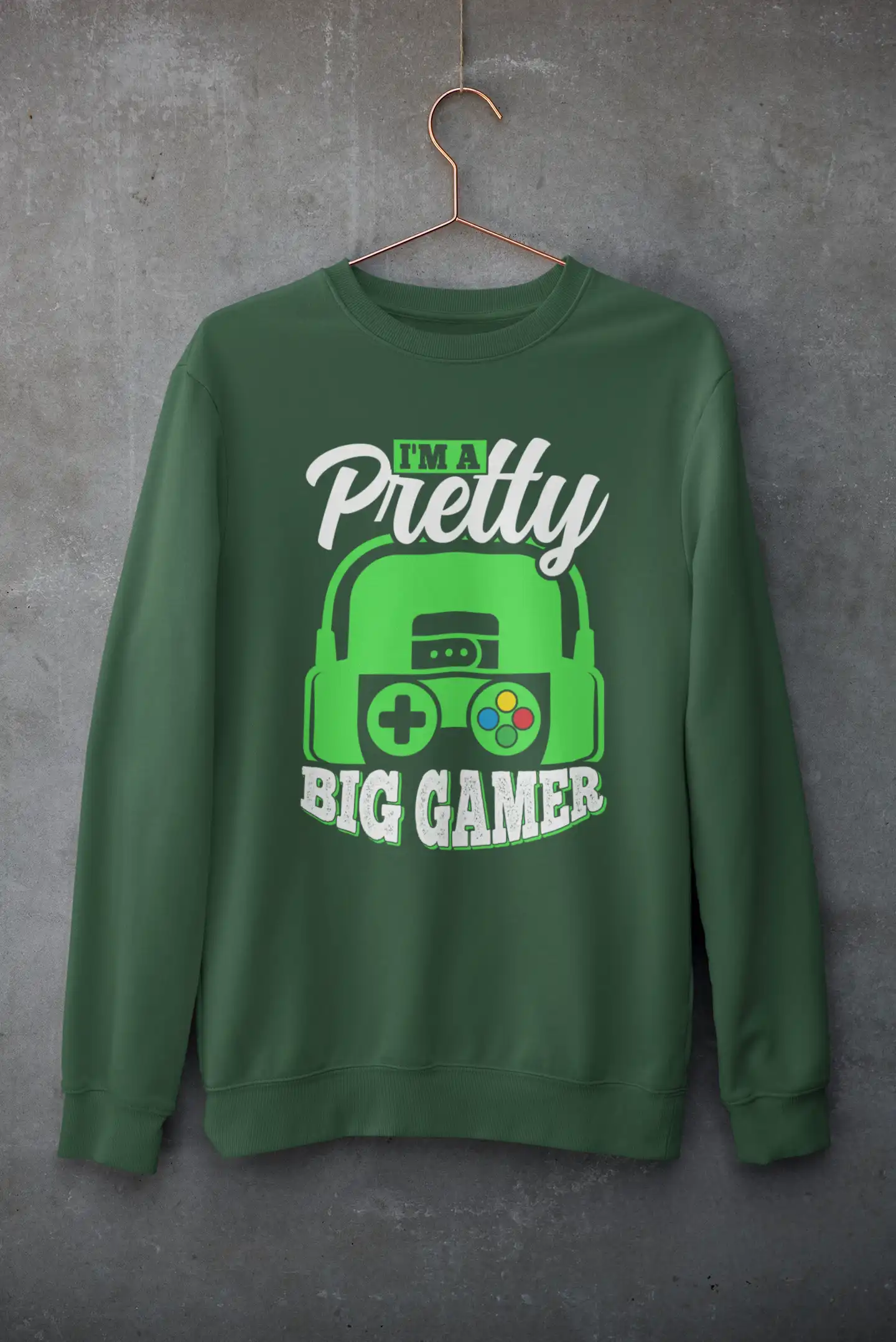 The highlight? A punchy gamer-themed print that says it all: “I’m a Pretty Big Gamer.” Whether you’re flexing your console skills or just love a good statement piece, this sweatshirt has your back—literally.
